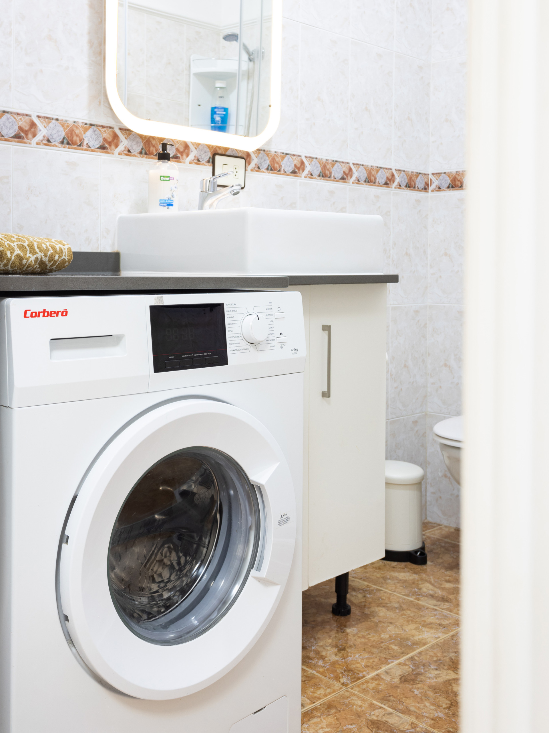 La cocina americana está totalmente equipada con electrodomésticos modernos como nevera, lavadora, microondas, cafetera, tostadora, hervidor . Además, dispone de todos los utensilios de cocina necesarios para preparar deliciosas comidas.