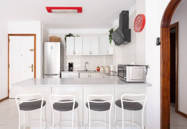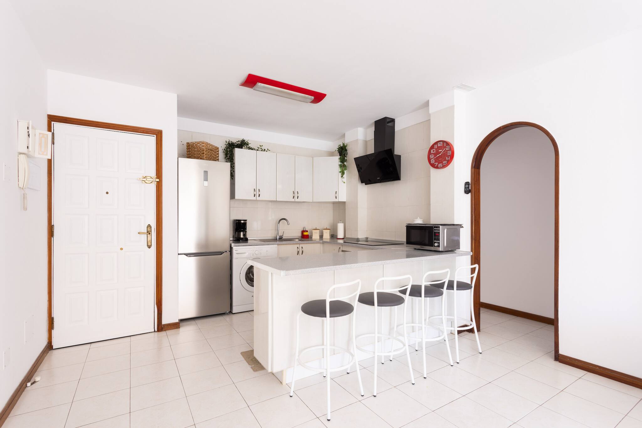 Apartamento para 6 personas con terraza privada y en un complejo con piscina Climatizada, Jardines ; mucho espacio para caminar dentro del mismo, con fácil acceso en los alrededores tiendas, supermercado, y parada de taxis y transporte publico sitios para comer, tomar algo y la playa a 200 mts andando.