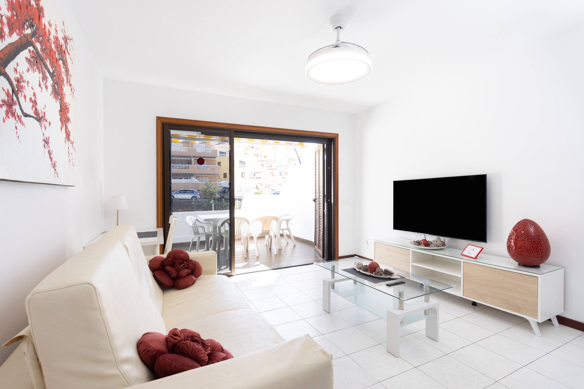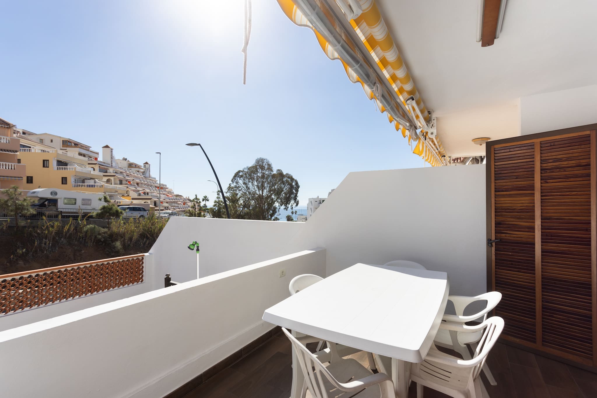 El apartamento totalmente equipado y cuenta una Grandiosa Terraza, con sus respectivas tumbonas y para pasar un día en familia. Se encuentra a 5 minutos caminando de la playa las vistas y el Camison, en el Sur de Tenerife, una zona donde se puede disfrutar del sol todo el año Lugar ideal para pasear al atardecer o tomar algo en cualquiera de las terrazas junto al mar, con un gran ambiente durante todo el año a cualquier hora del día.