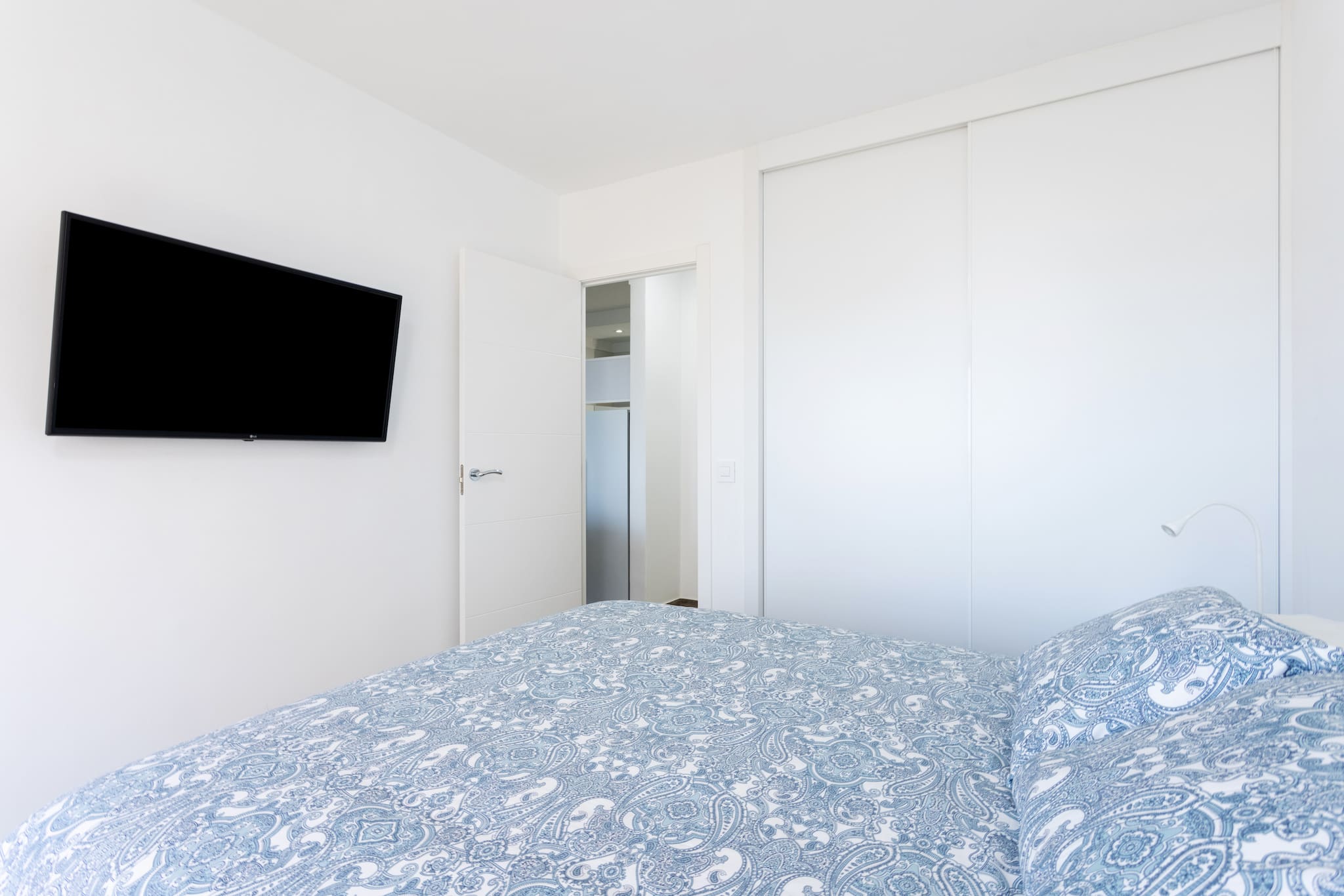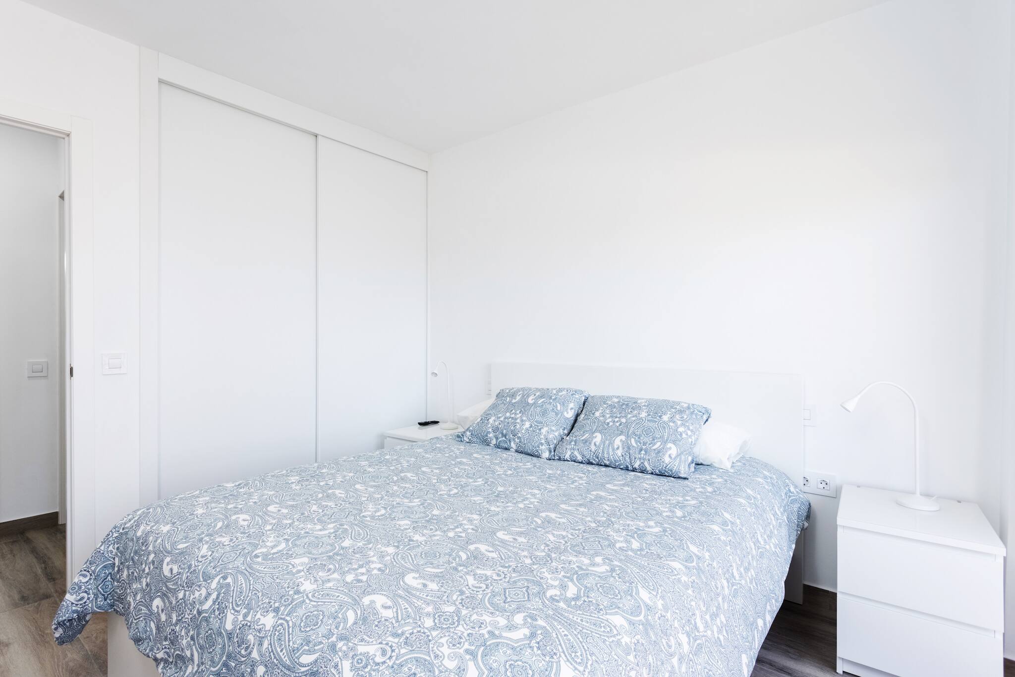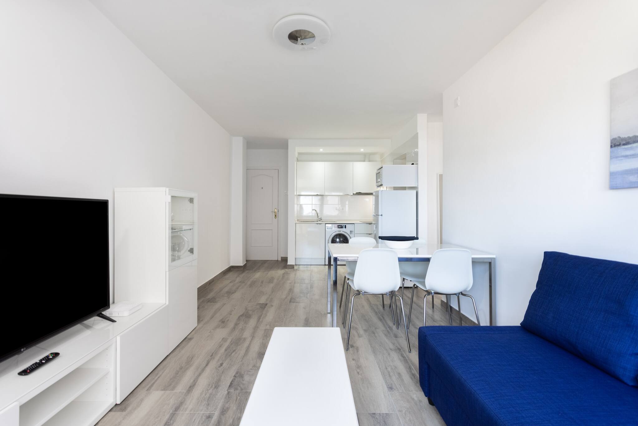 El apartamento cuenta con un dormitorio con cama de matrimonio, baño completo, cocina totalmente equipada y un salón luminoso. Es ideal para parejas o familias con niños ya que dispone de un sillón cama con 3 plazas (para dos adultos y un niño/a).