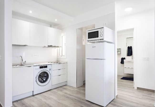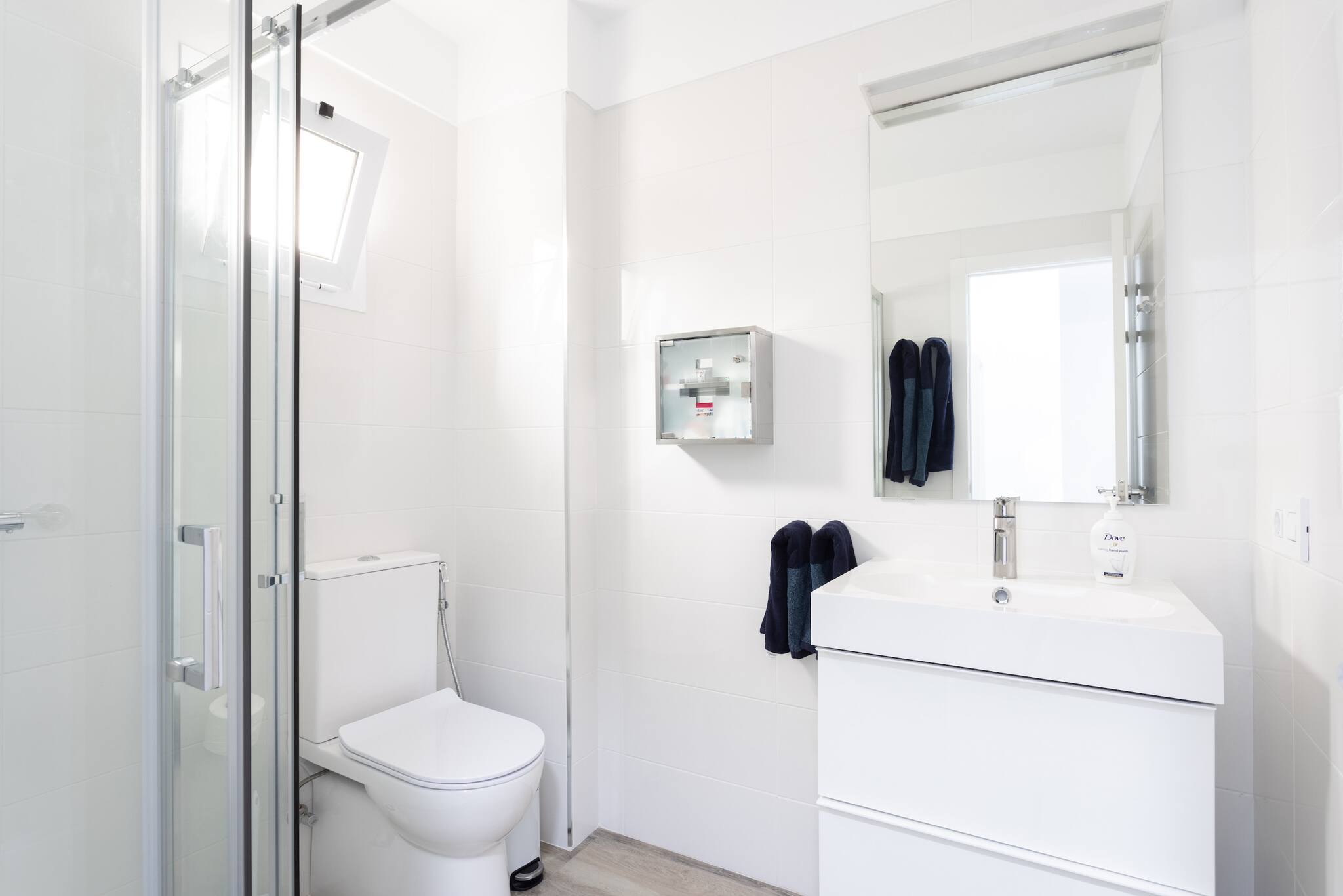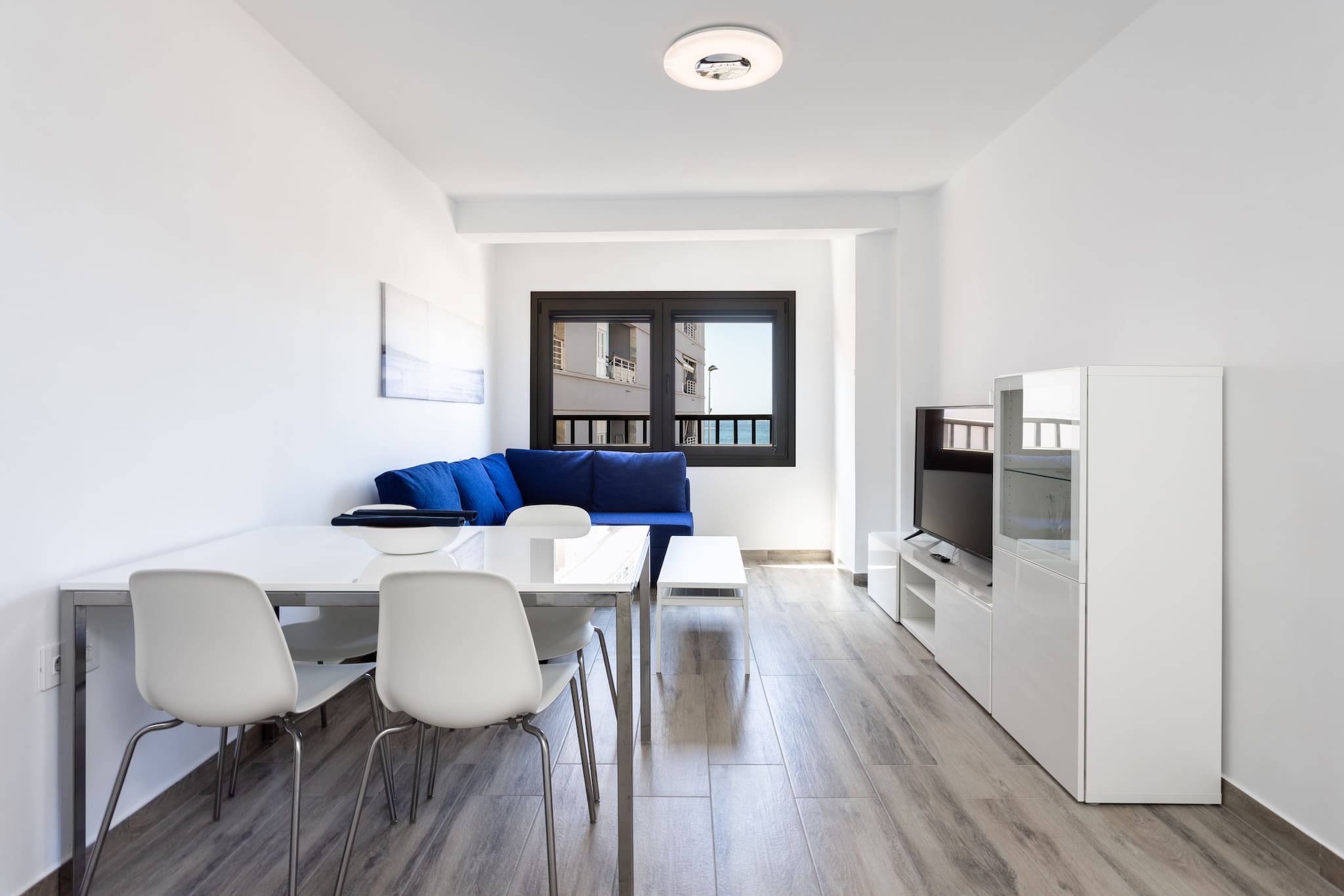 El apartamento cuenta con un dormitorio con cama de matrimonio, baño completo, cocina totalmente equipada y un salón luminoso. Es ideal para parejas o familias con niños ya que dispone de un sillón cama con 3 plazas (para dos adultos y un niño/a).