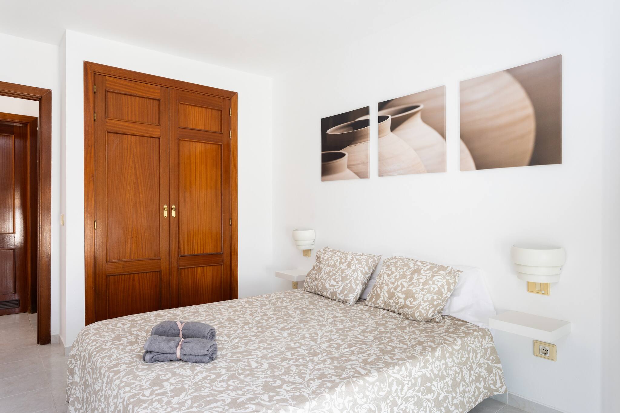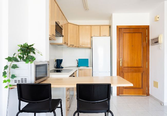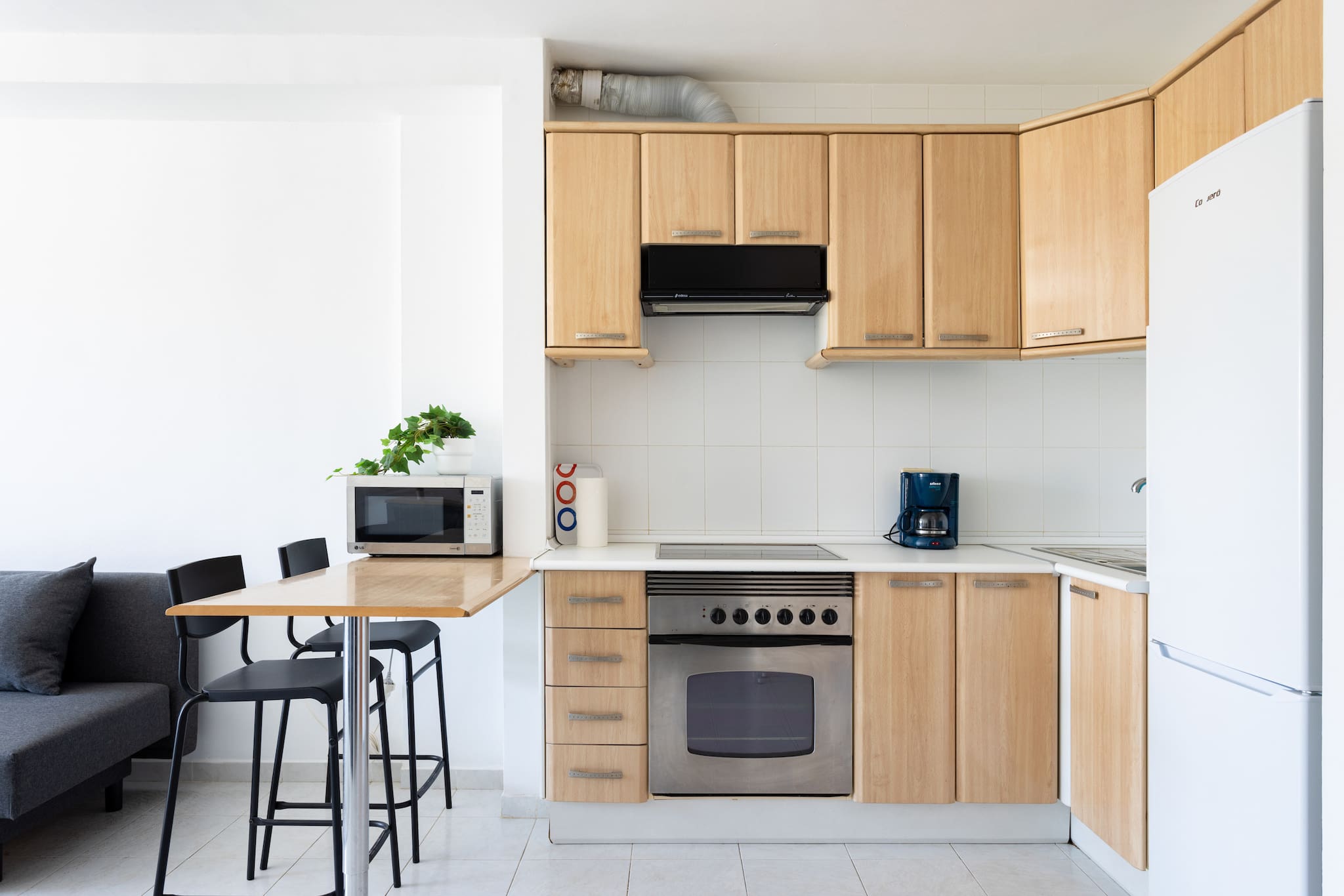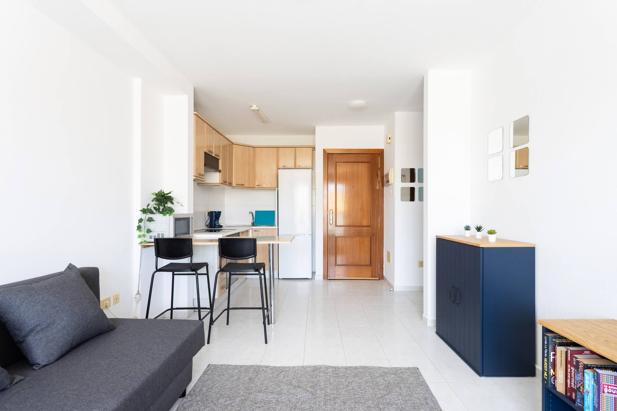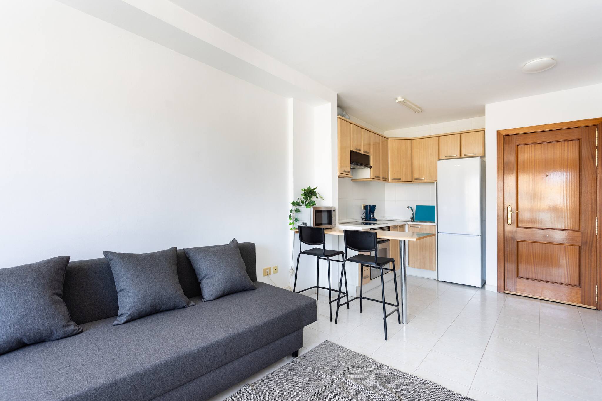 El apartamento cuenta con un dormitorio con cama de matrimonio, baño completo, cocina totalmente equipada y un salón luminoso. Es ideal para parejas o familias con niños ya que dispone de un sillón cama con 3 plazas (para dos adultos y un niño/a).