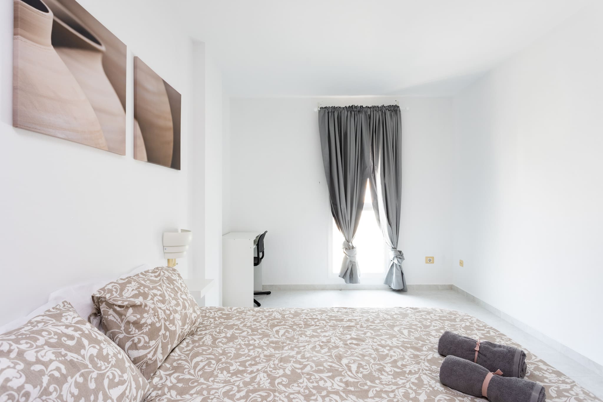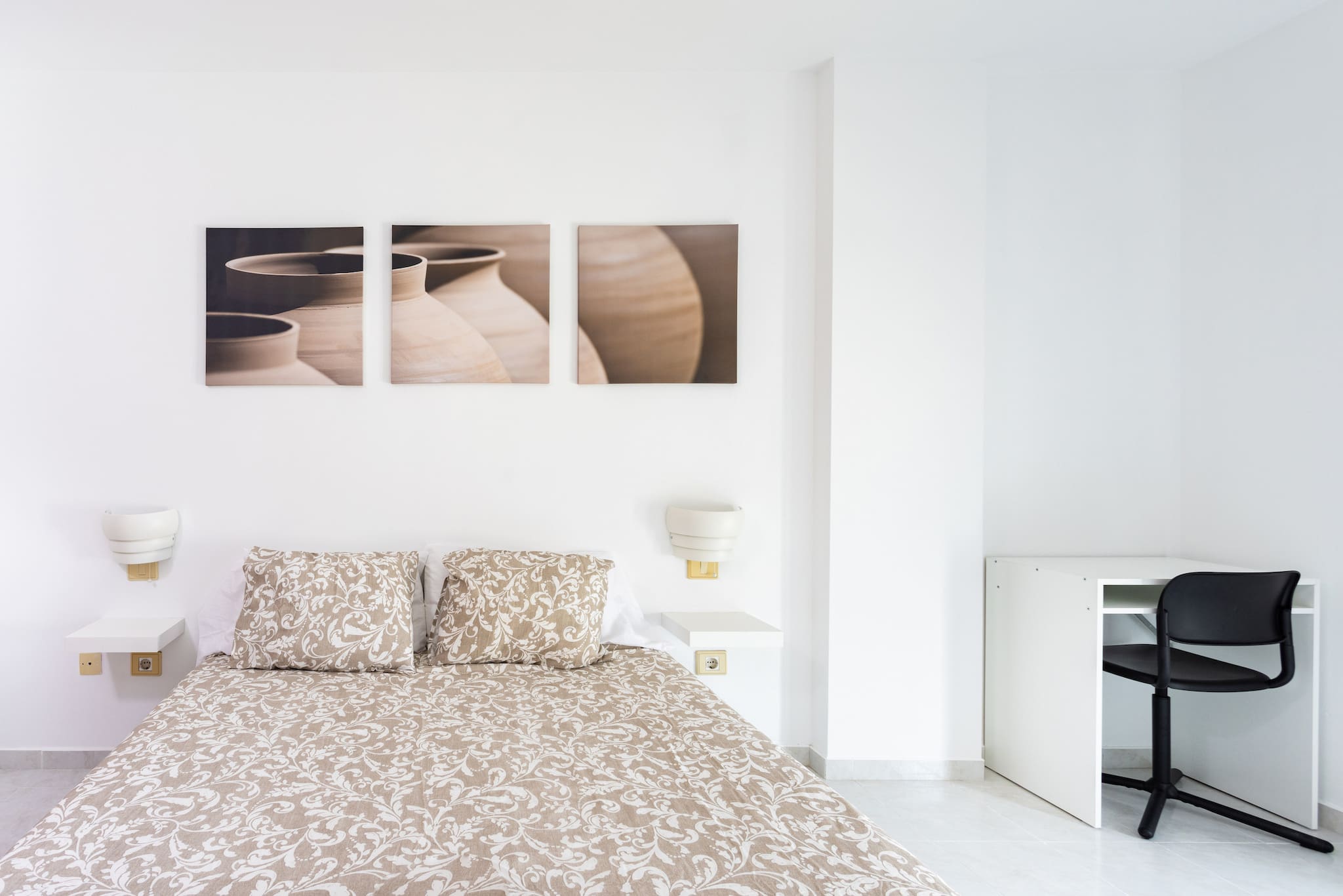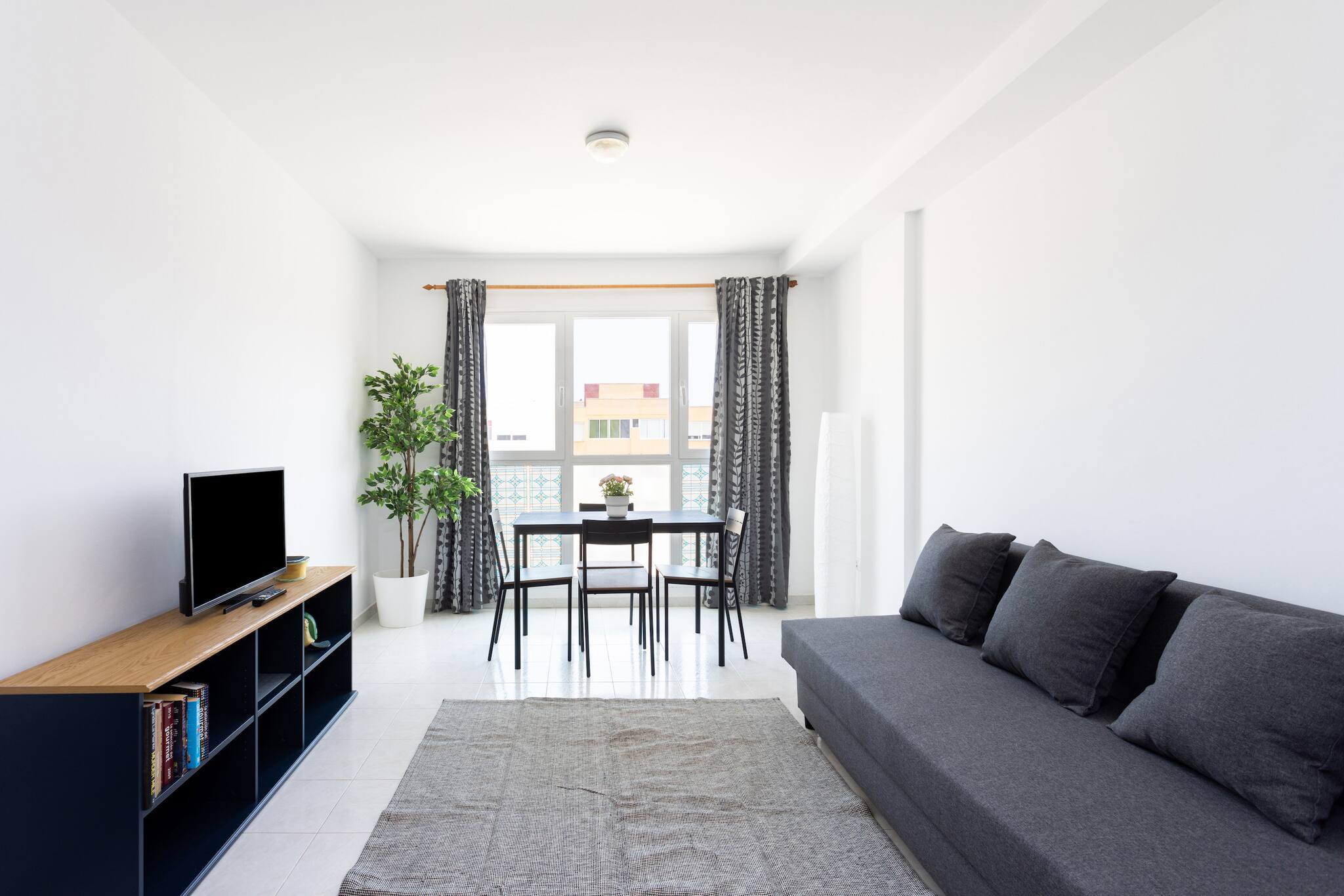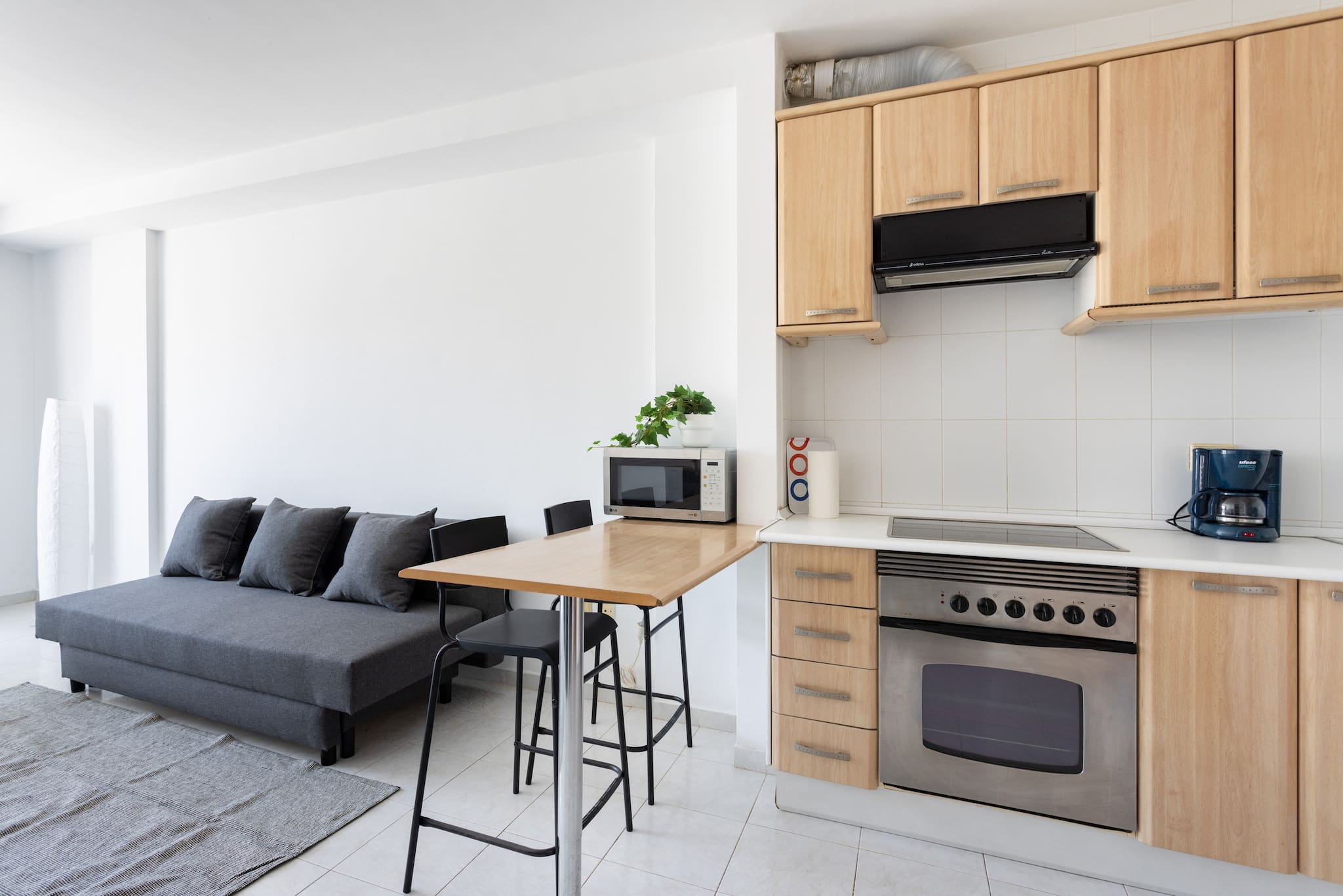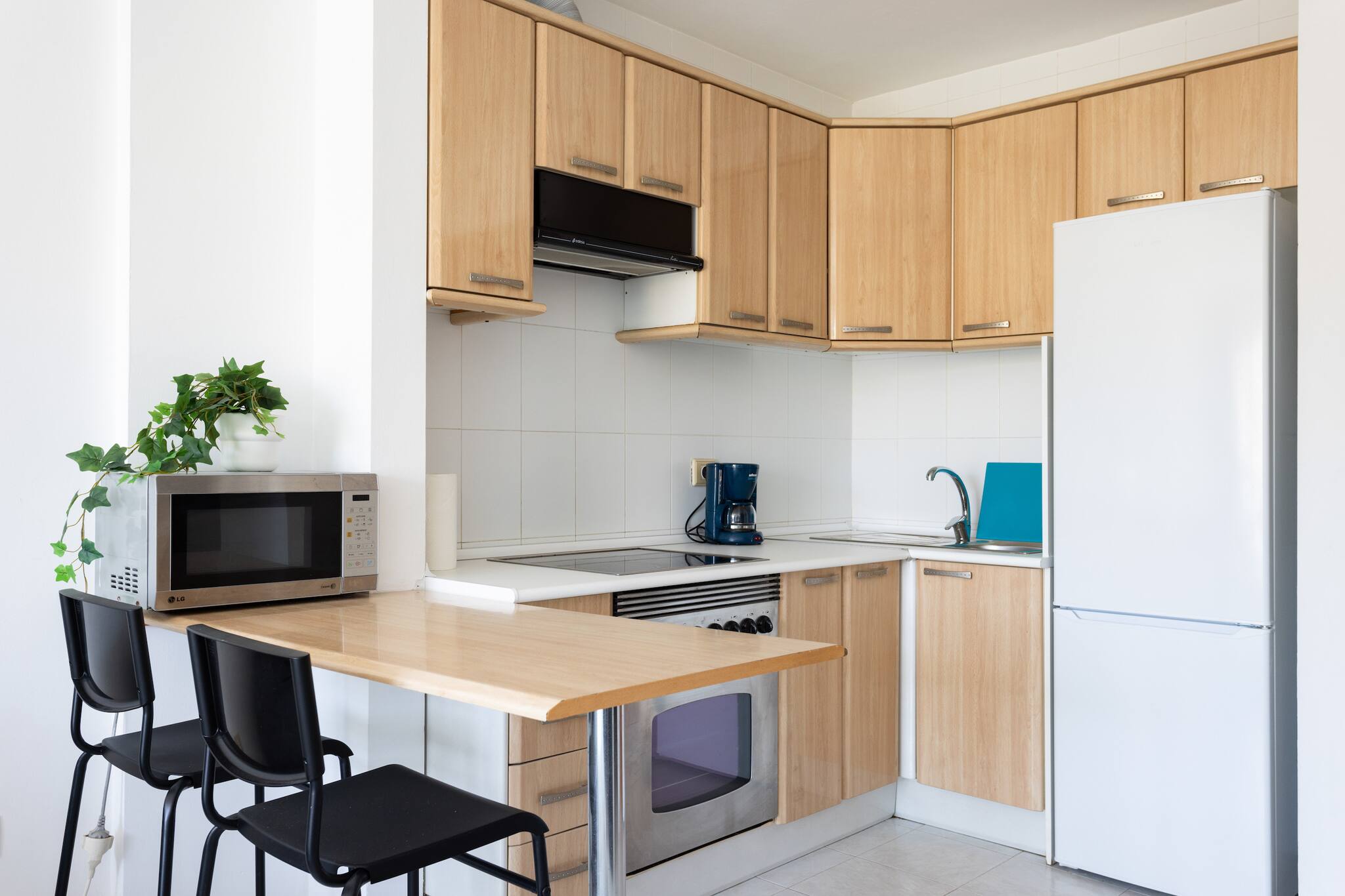 El apartamento cuenta con un dormitorio con cama de matrimonio, baño completo, cocina totalmente equipada y un salón luminoso. Es ideal para parejas o familias con niños ya que dispone de un sillón cama con 3 plazas (para dos adultos y un niño/a).