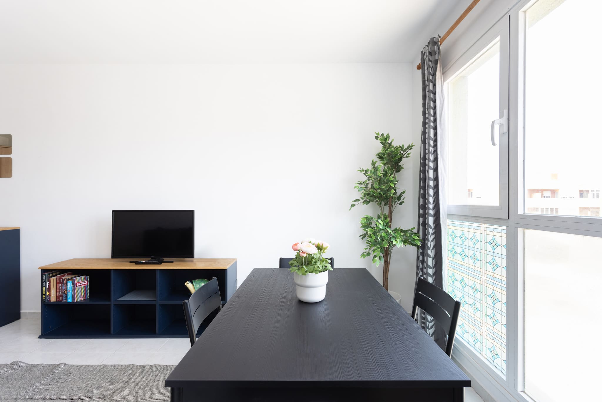 El apartamento cuenta con Internet (wifi), cocina completamente equipada, lavadora, nevera, horno, microondas, secador de pelo, sábanas y toallas de ducha.