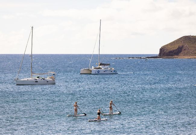 Está ubicado a cinco minutos caminando a la playa, en la zona del Médano, en el Sur de Tenerife, donde se puede disfrutar de sol durante todo el año y muy cerca del Aeropuerto del Sur.