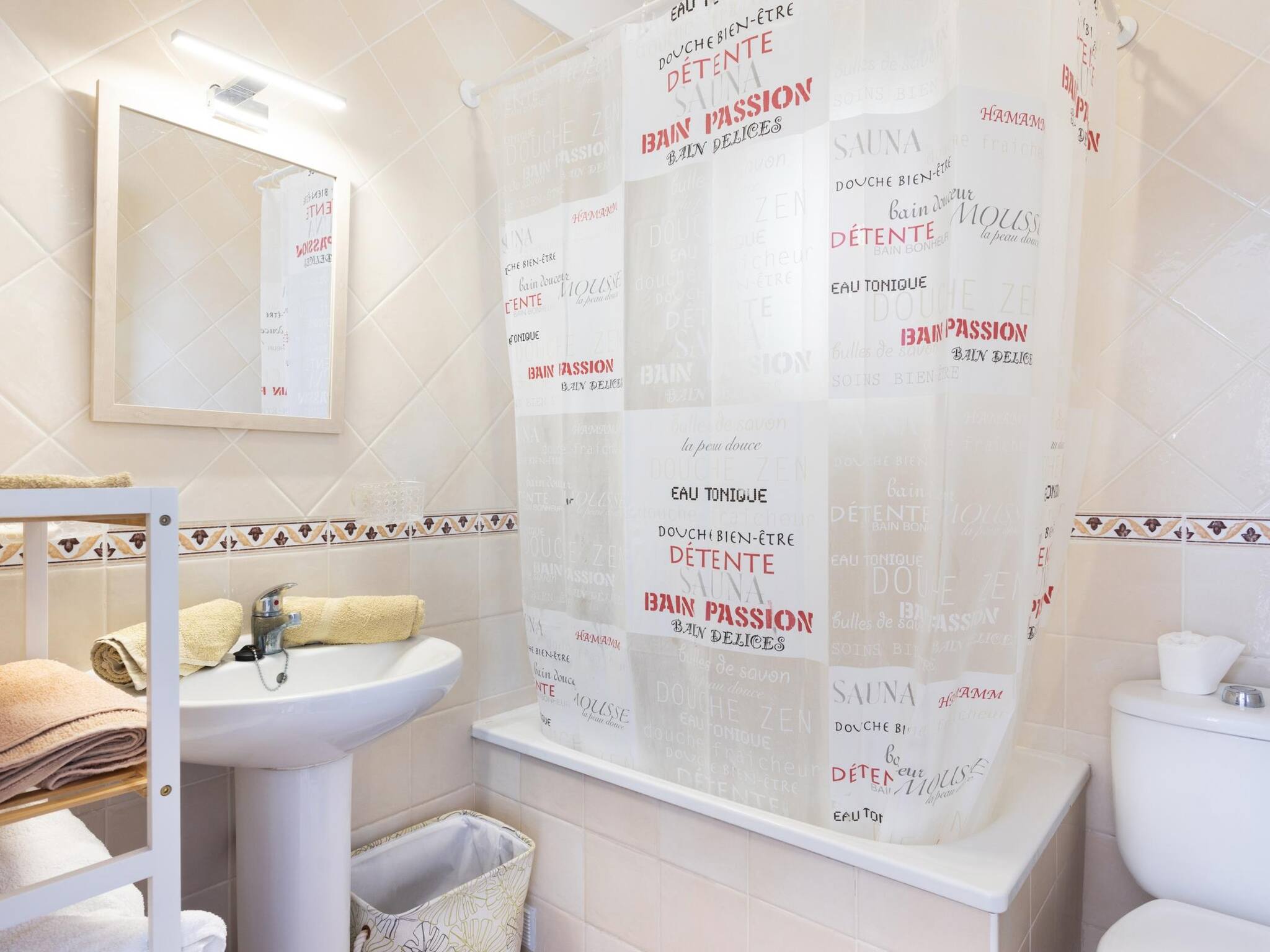 El apartamento dispone de dos baños, uno con ducha y otro con bañera, lo que facilita la rutina diaria de los huéspedes. Cuenta con una cama doble y una individual, ideal para familias o grupos pequeños. La zona de descanso está equipada con conexión WiFi para mantenerte comunicado durante tu estancia.