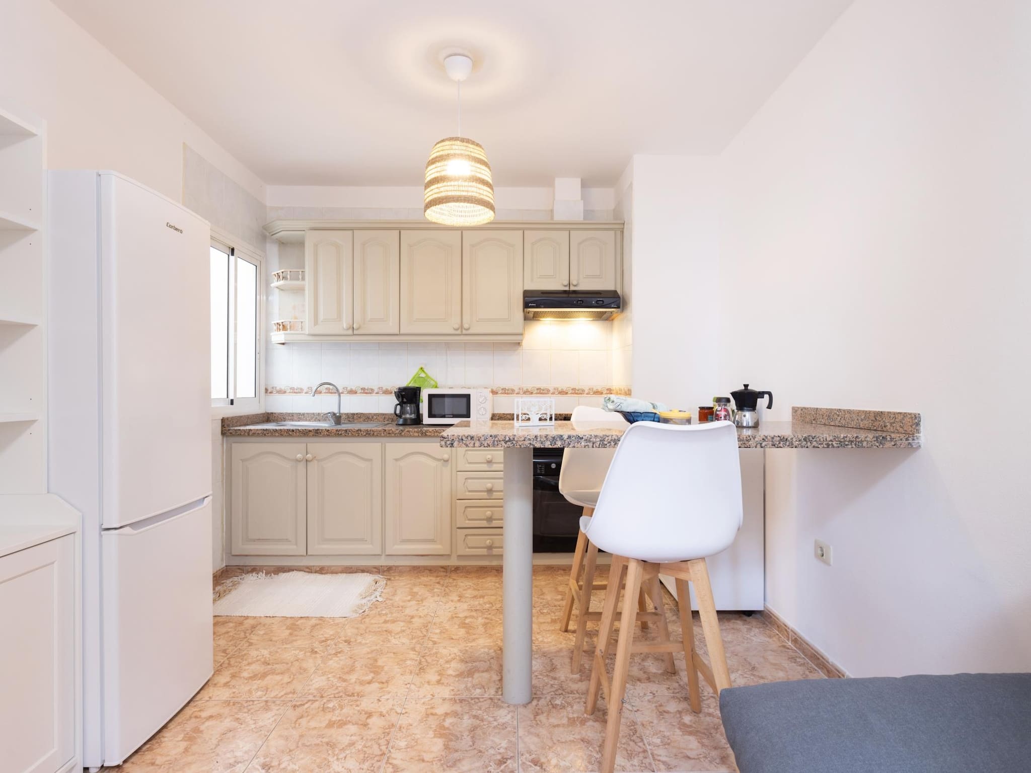 El apartamento cuenta con una distribución práctica que incluye una cama doble, una cama individual y un sofá-cama, garantizando un descanso cómodo para todos los huéspedes. La cocina está completamente equipada con nevera, congelador, lavadora y menaje, permitiéndote preparar comidas deliciosas durante tu estancia.