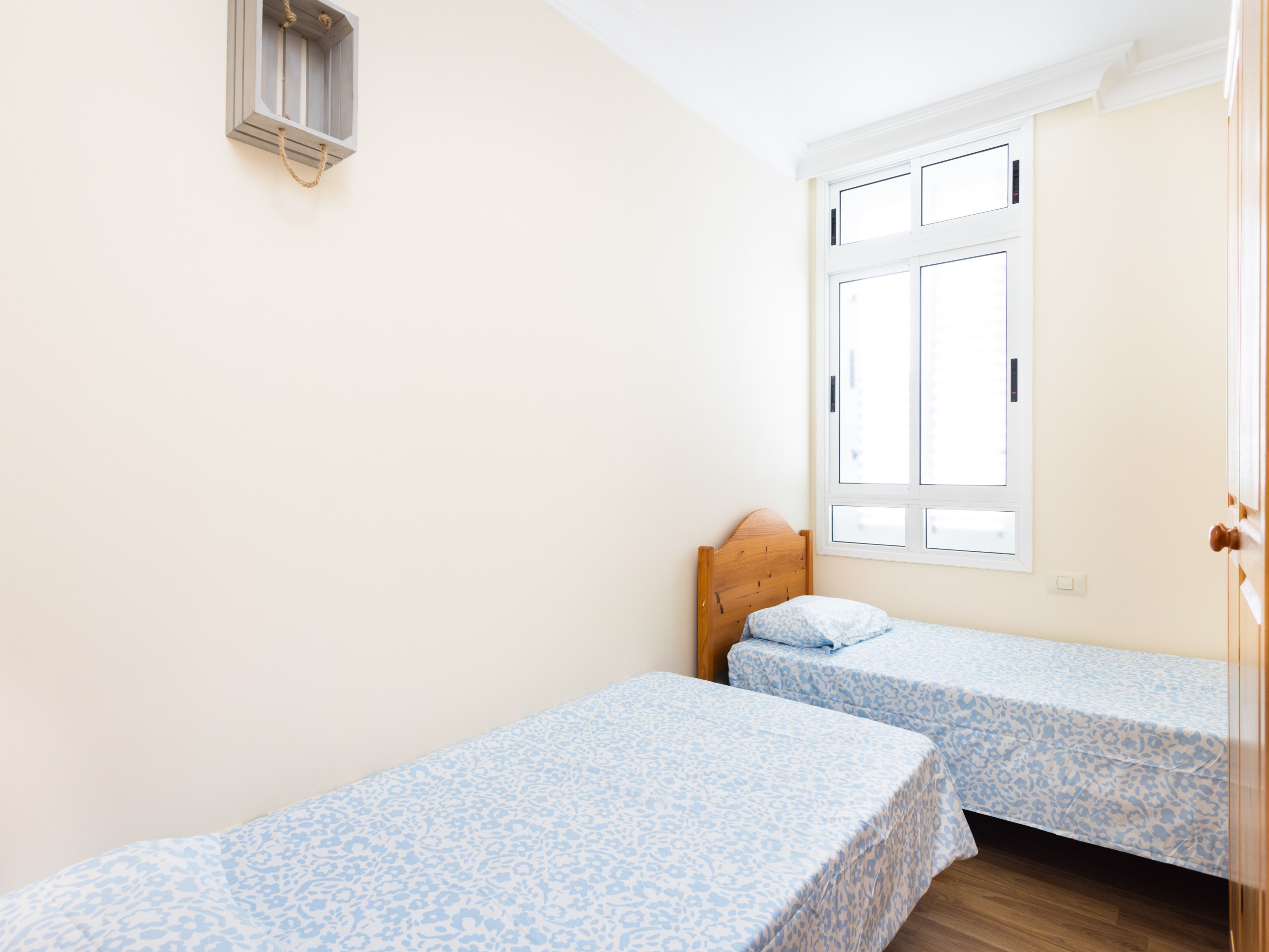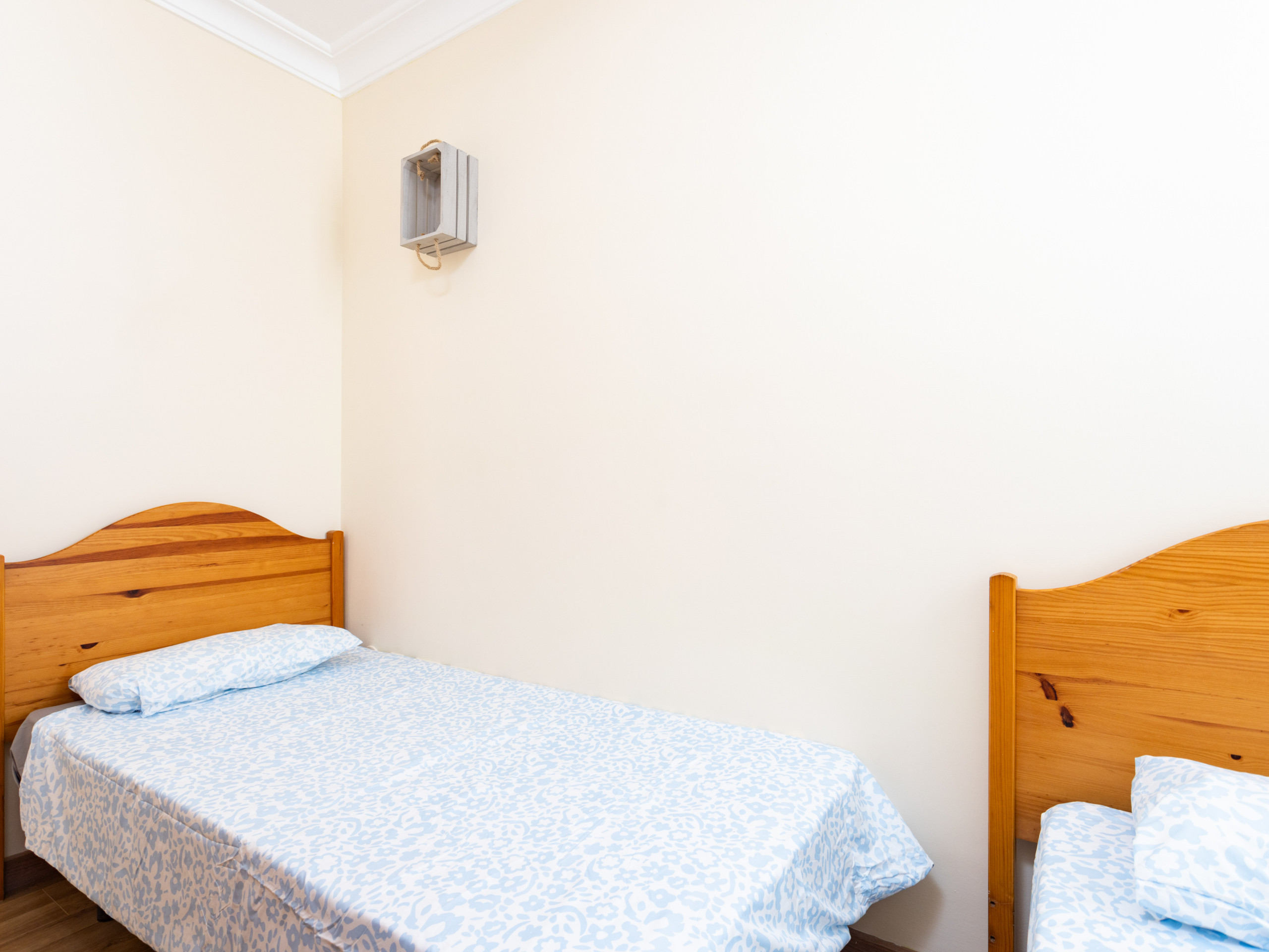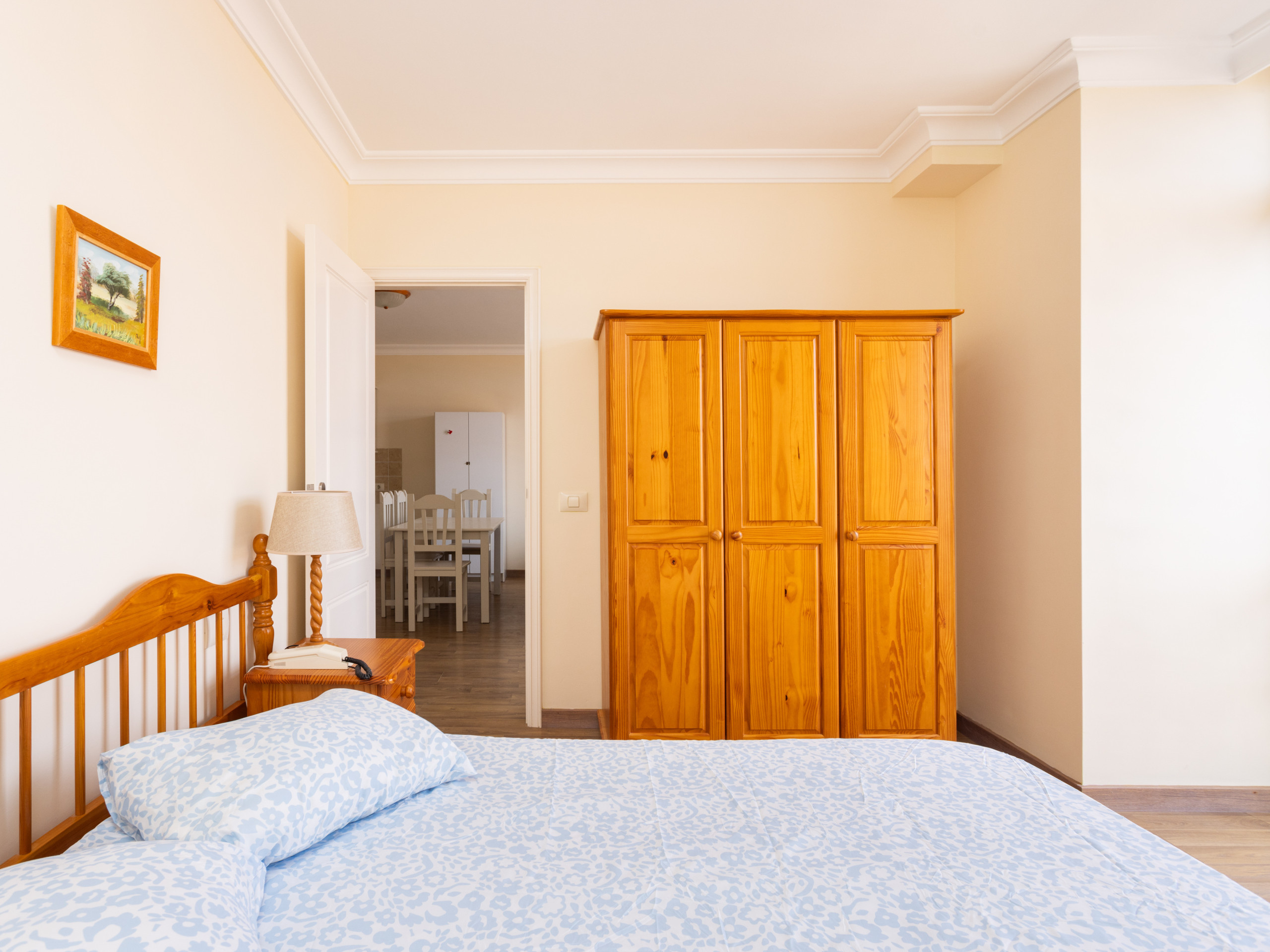 El apartamento cuenta con dos dormitorios que pueden acomodar hasta 4 personas cómodamente. Dispone de una cama doble y dos camas individuales, ideal para familias o grupos de amigos. La luminosidad del espacio es uno de sus principales atractivos, creando un ambiente cálido y acogedor.