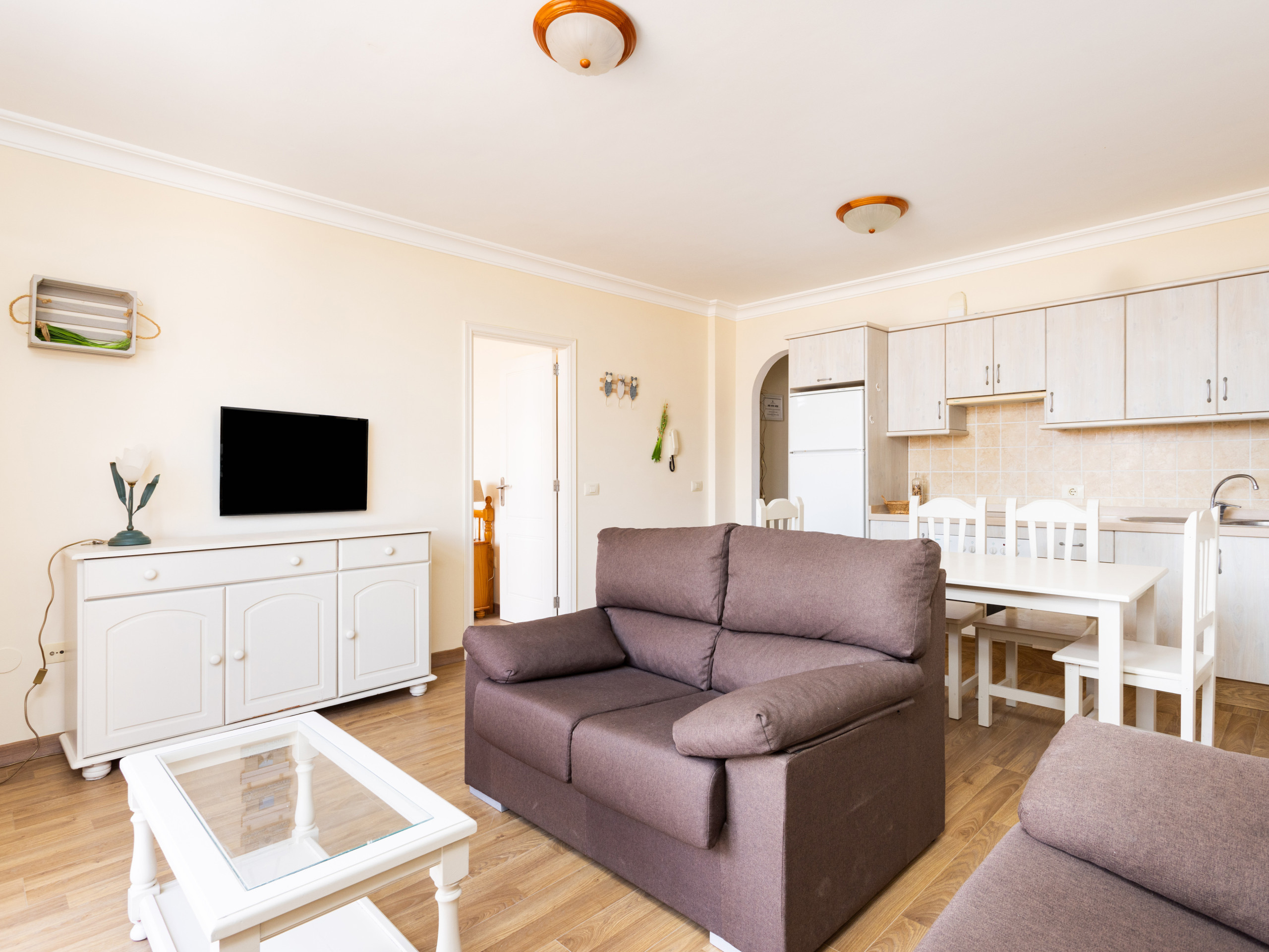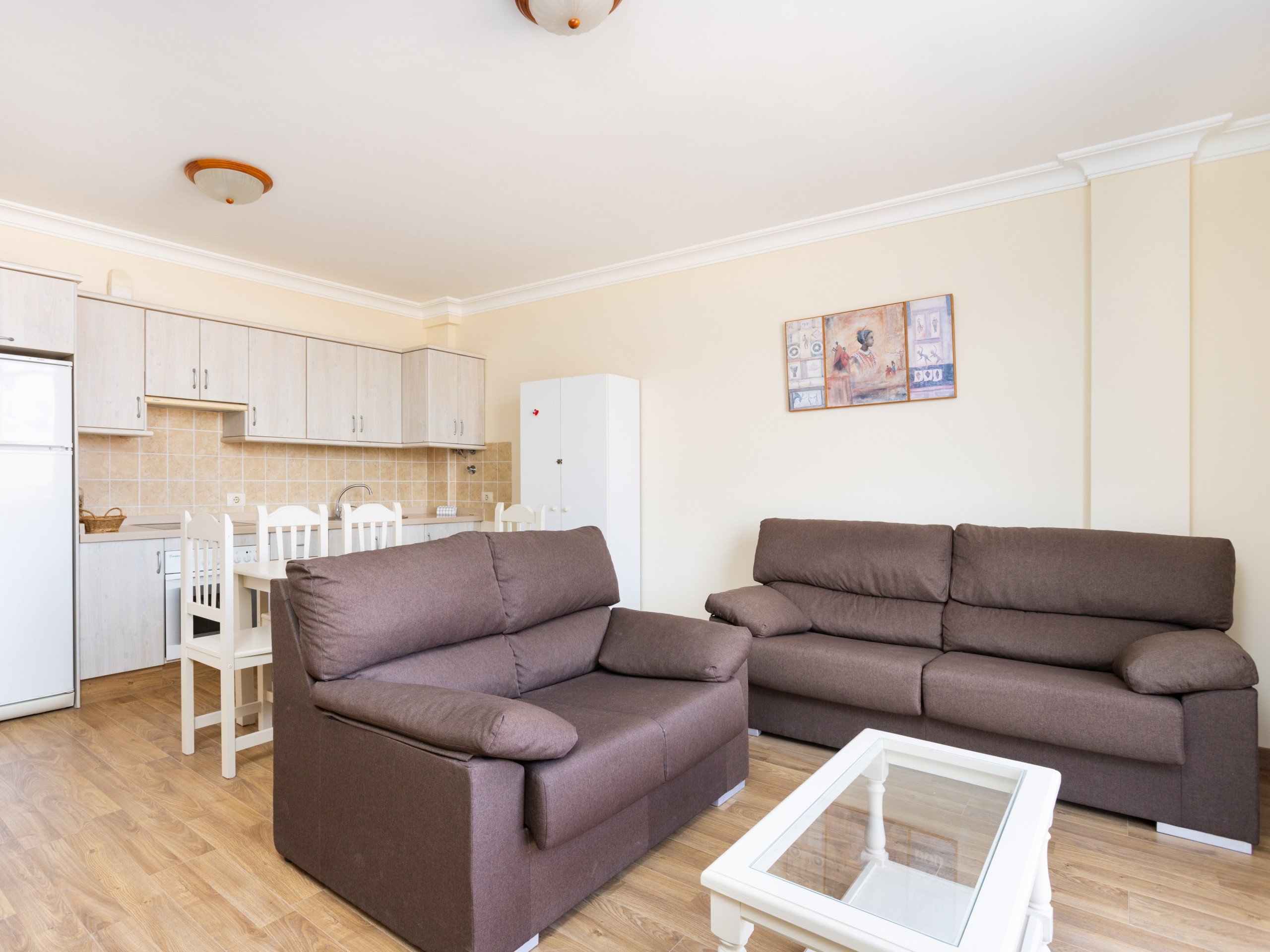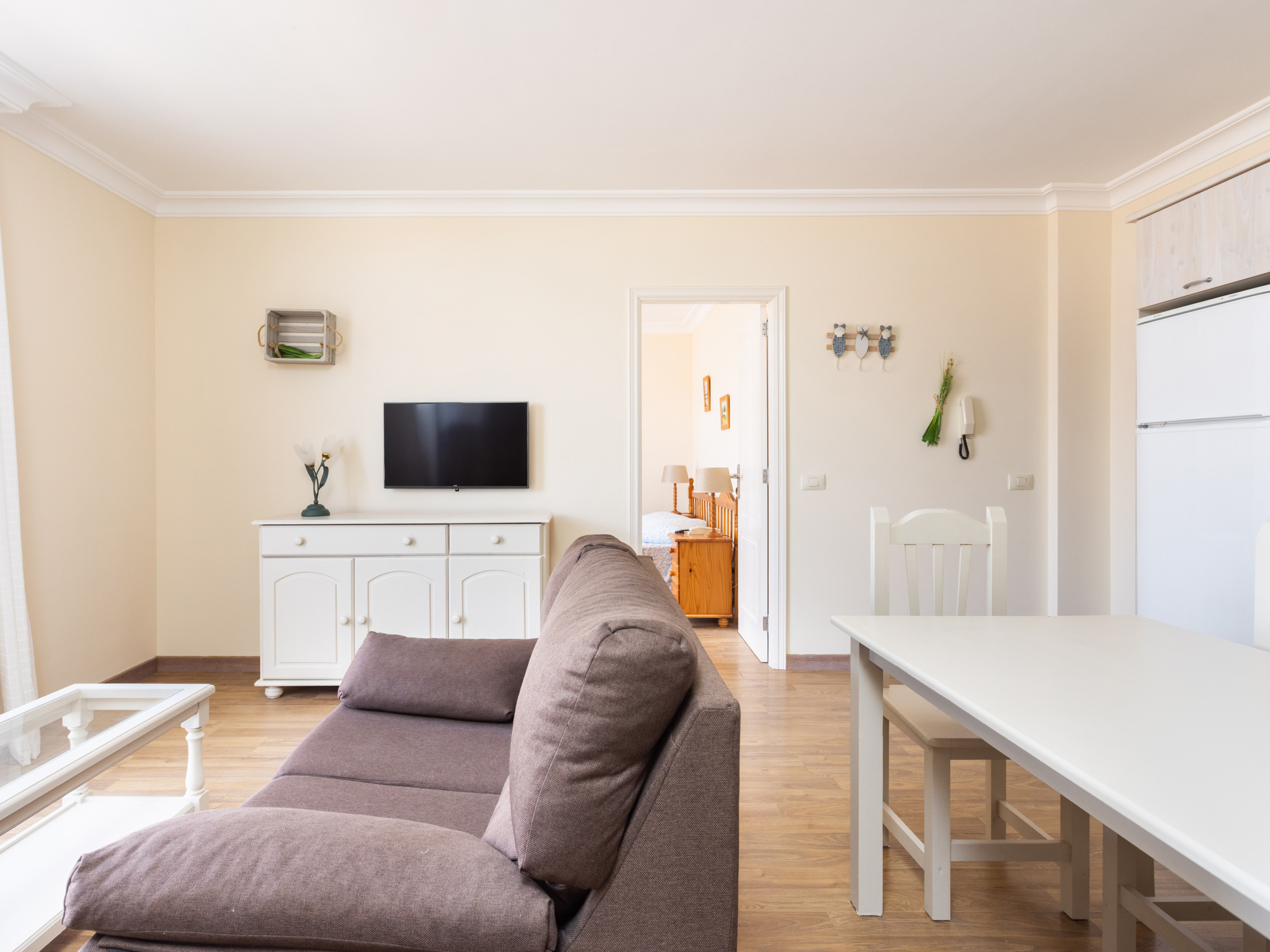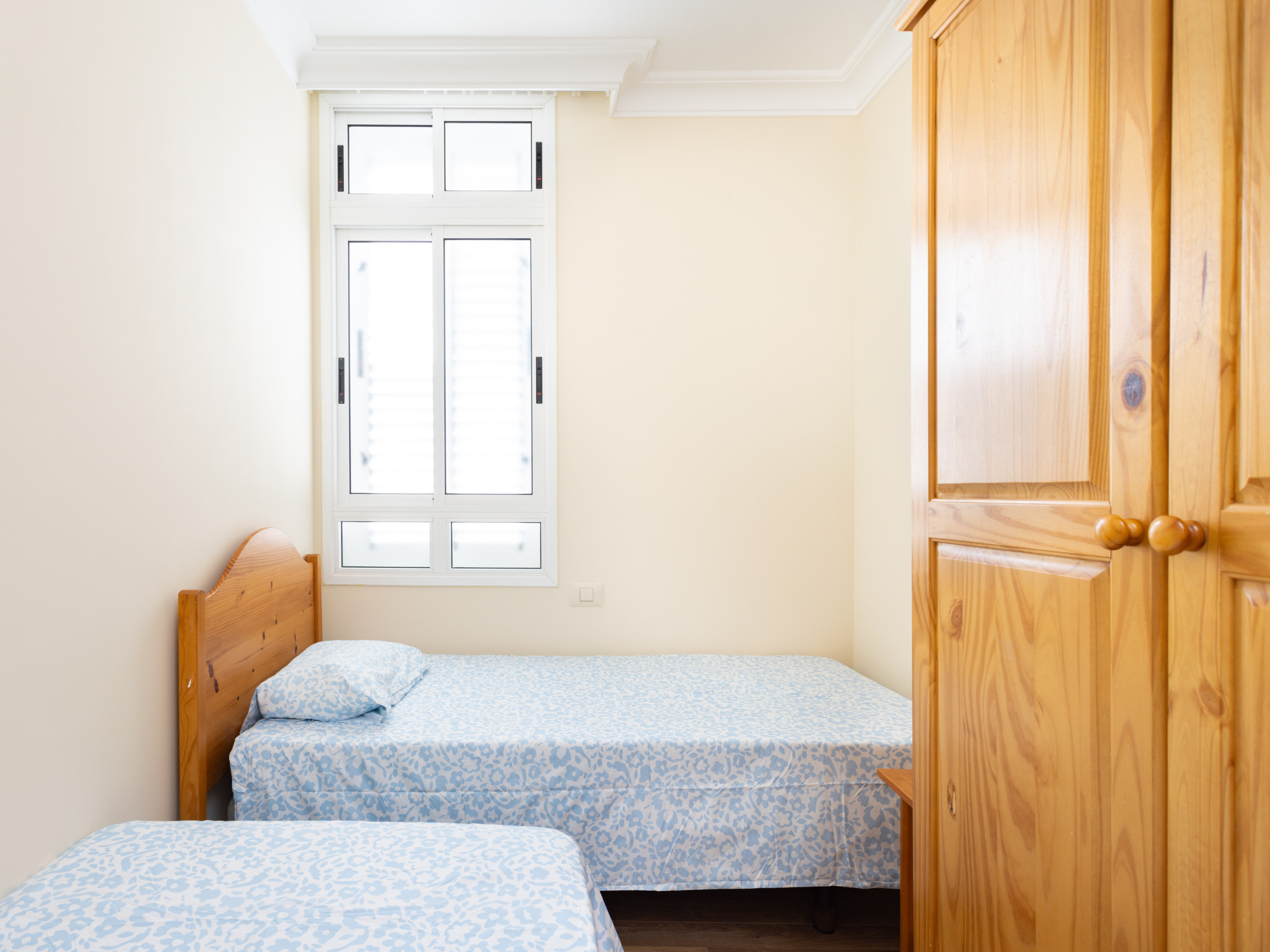 El apartamento cuenta con dos dormitorios que pueden acomodar hasta 4 personas cómodamente. Dispone de una cama doble y dos camas individuales, ideal para familias o grupos de amigos. La luminosidad del espacio es uno de sus principales atractivos, creando un ambiente cálido y acogedor.