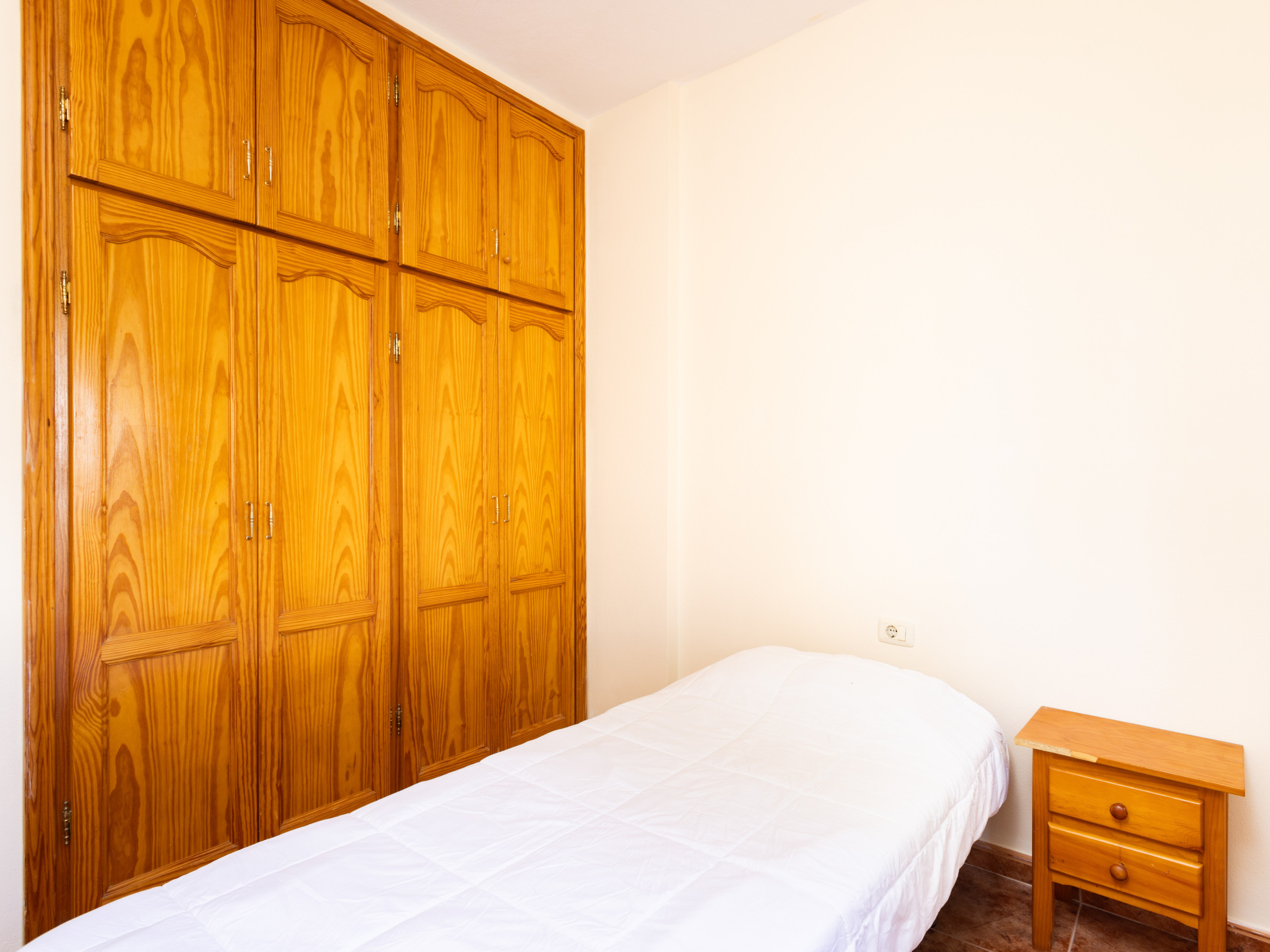 El apartamento cuenta con dos dormitorios que pueden acomodar hasta 4 personas cómodamente. Dispone de una cama doble y dos camas individuales, ideal para familias o grupos de amigos. La luminosidad del espacio es uno de sus principales atractivos, creando un ambiente cálido y acogedor.