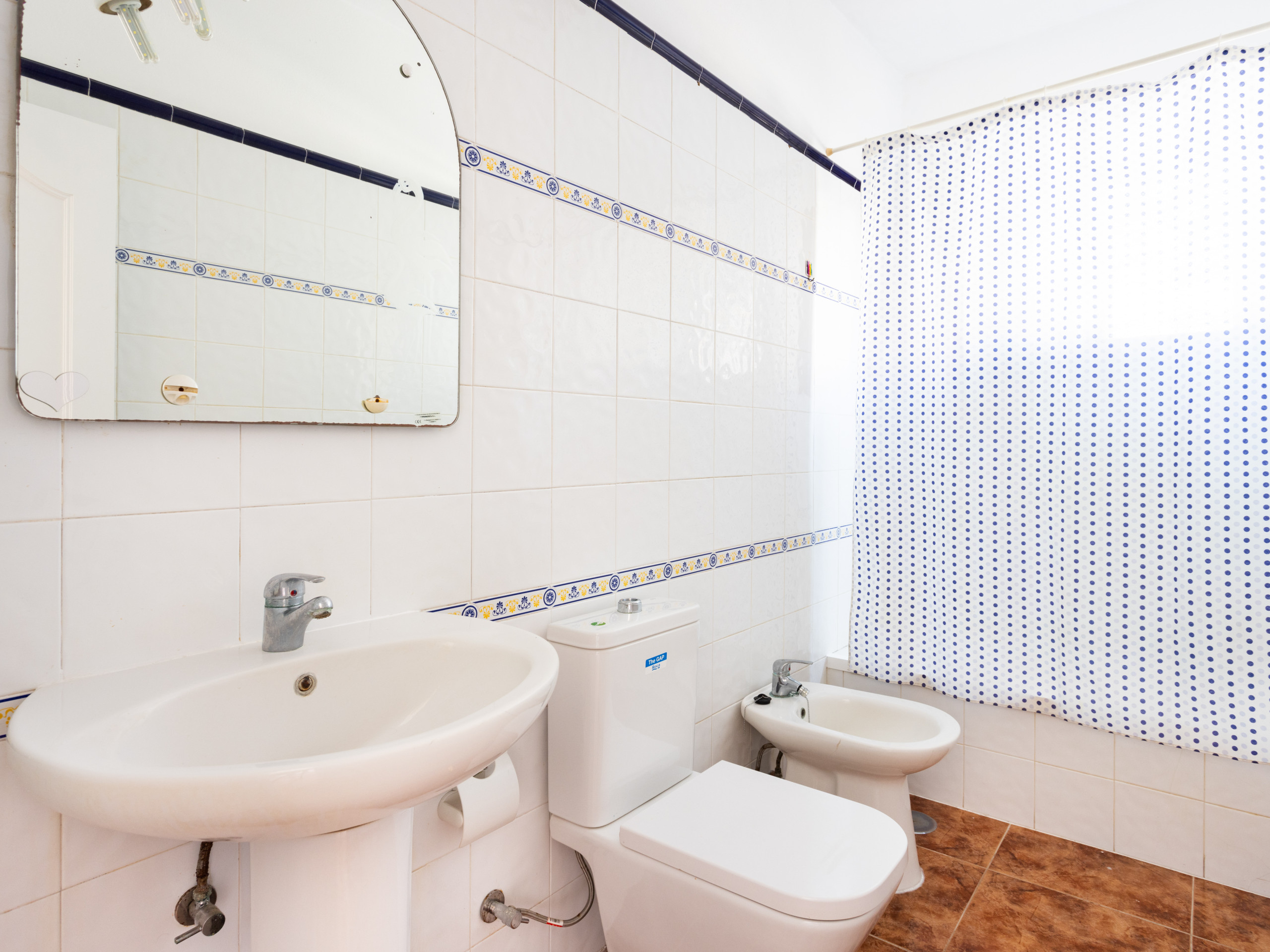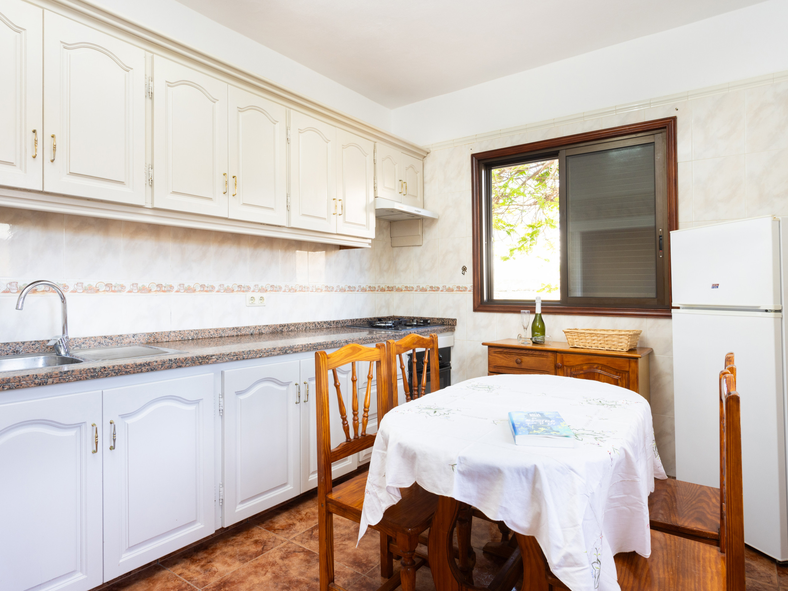 La cocina está completamente equipada con placas vitrocerámicas, frigorífico, congelador, horno, juguera y menaje completo. Además, cuenta con conexión WiFi para mantenerte conectado durante tu estancia. El apartamento tiene un único baño con ducha, perfecto para refrescarse después de un día de playa.