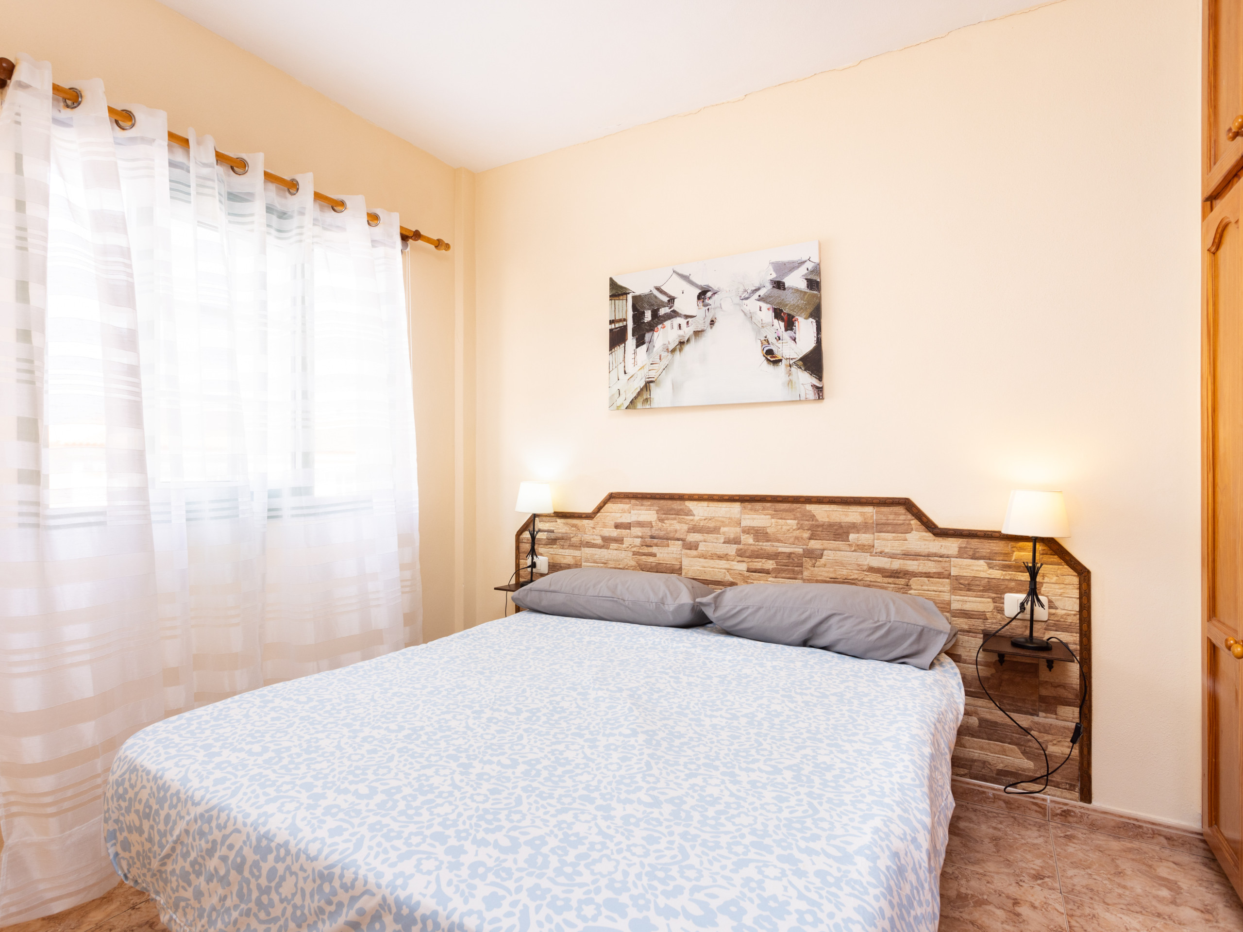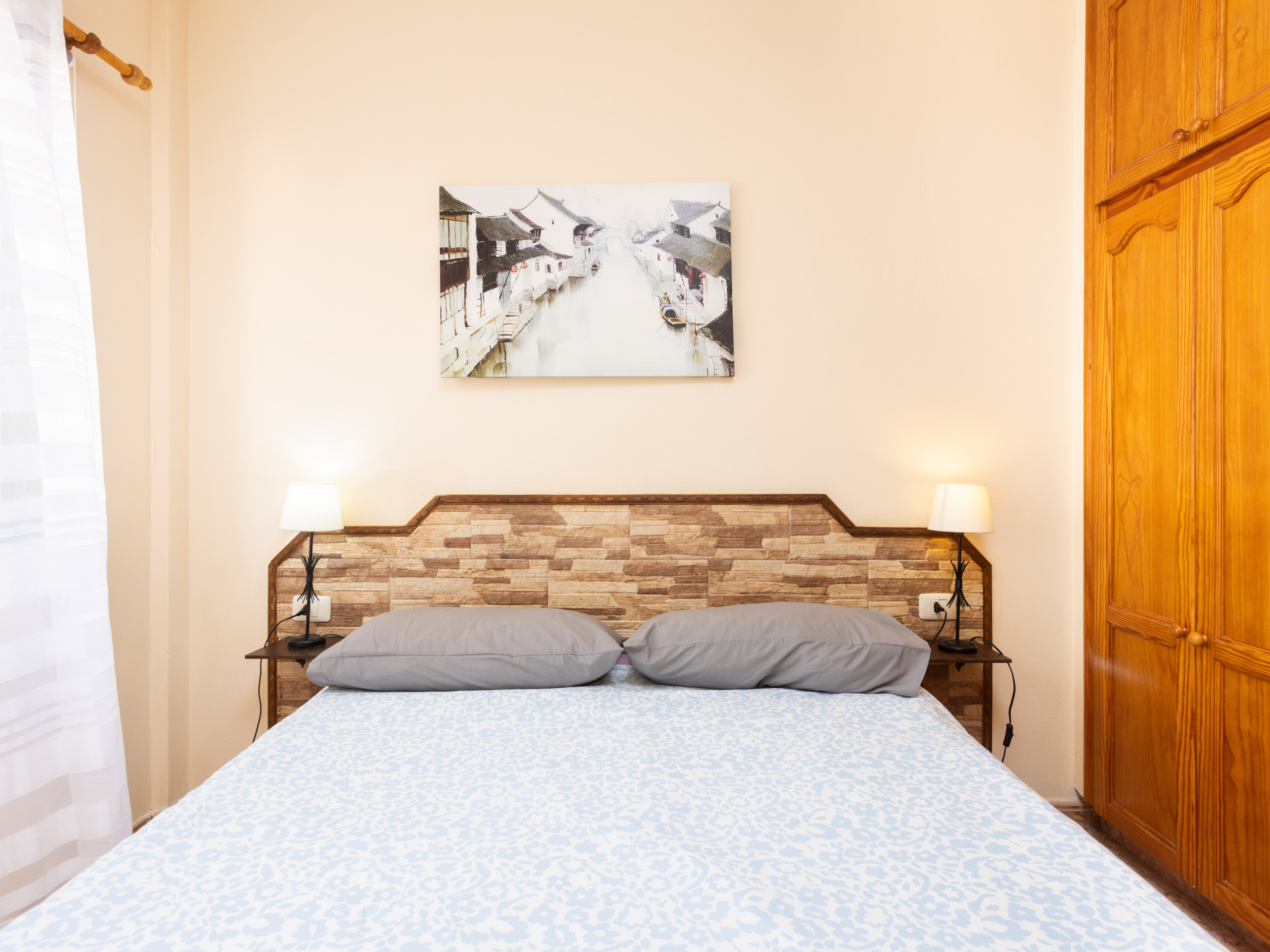 El apartamento cuenta con dos dormitorios que pueden acomodar hasta 4 personas cómodamente. Dispone de una cama doble y dos camas individuales, ideal para familias o grupos de amigos. La luminosidad del espacio es uno de sus principales atractivos, creando un ambiente cálido y acogedor.
