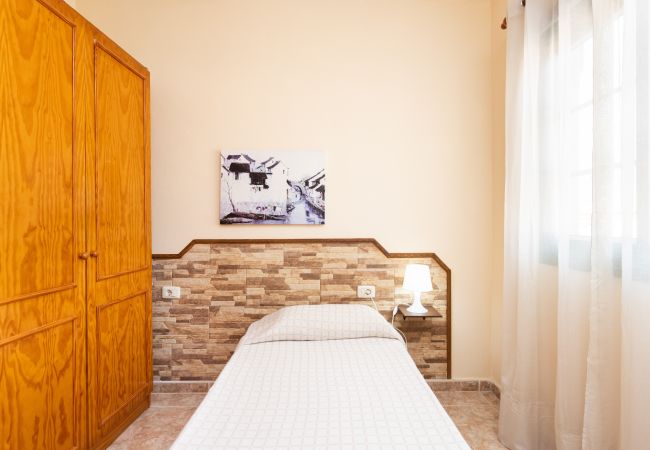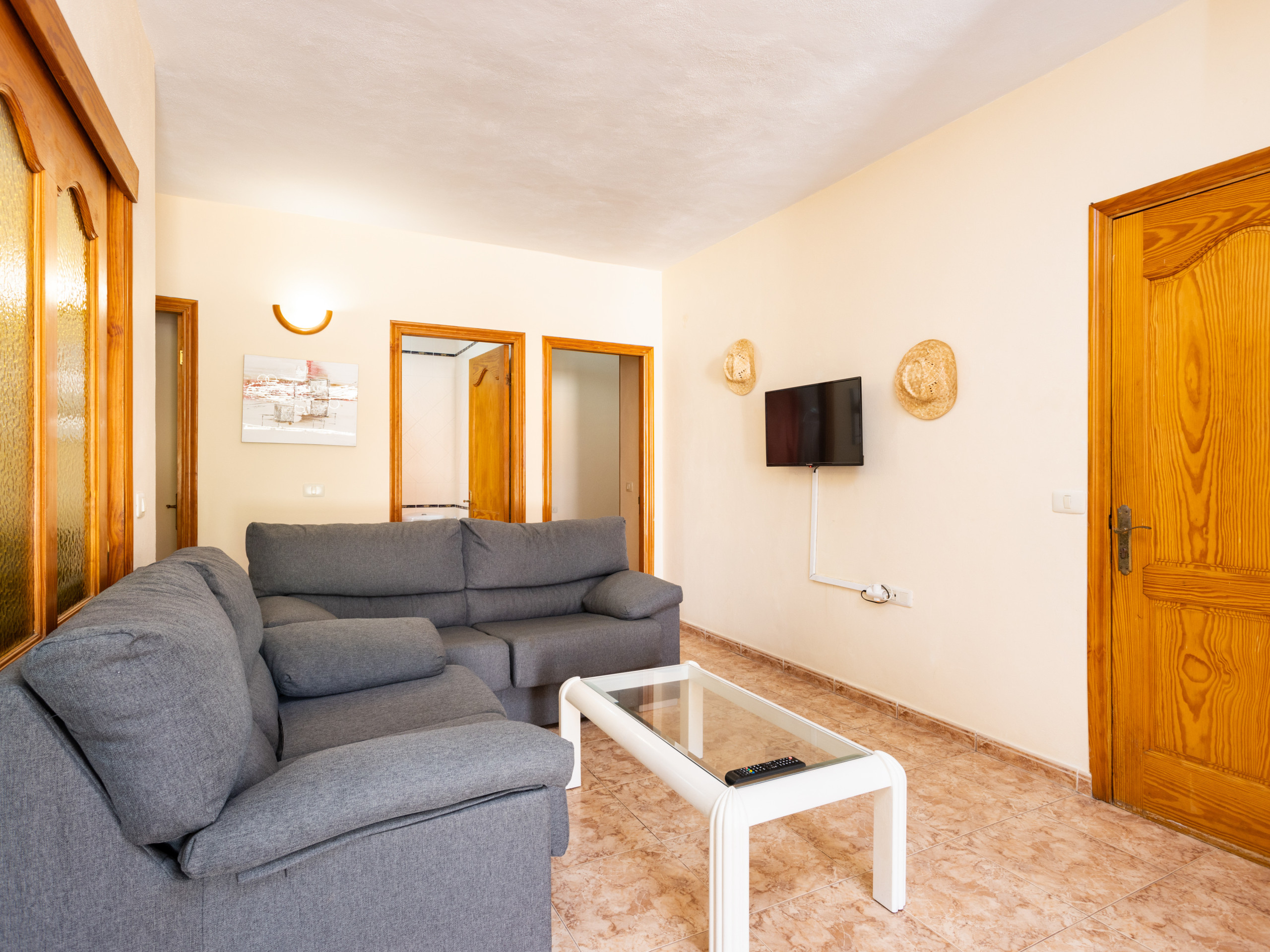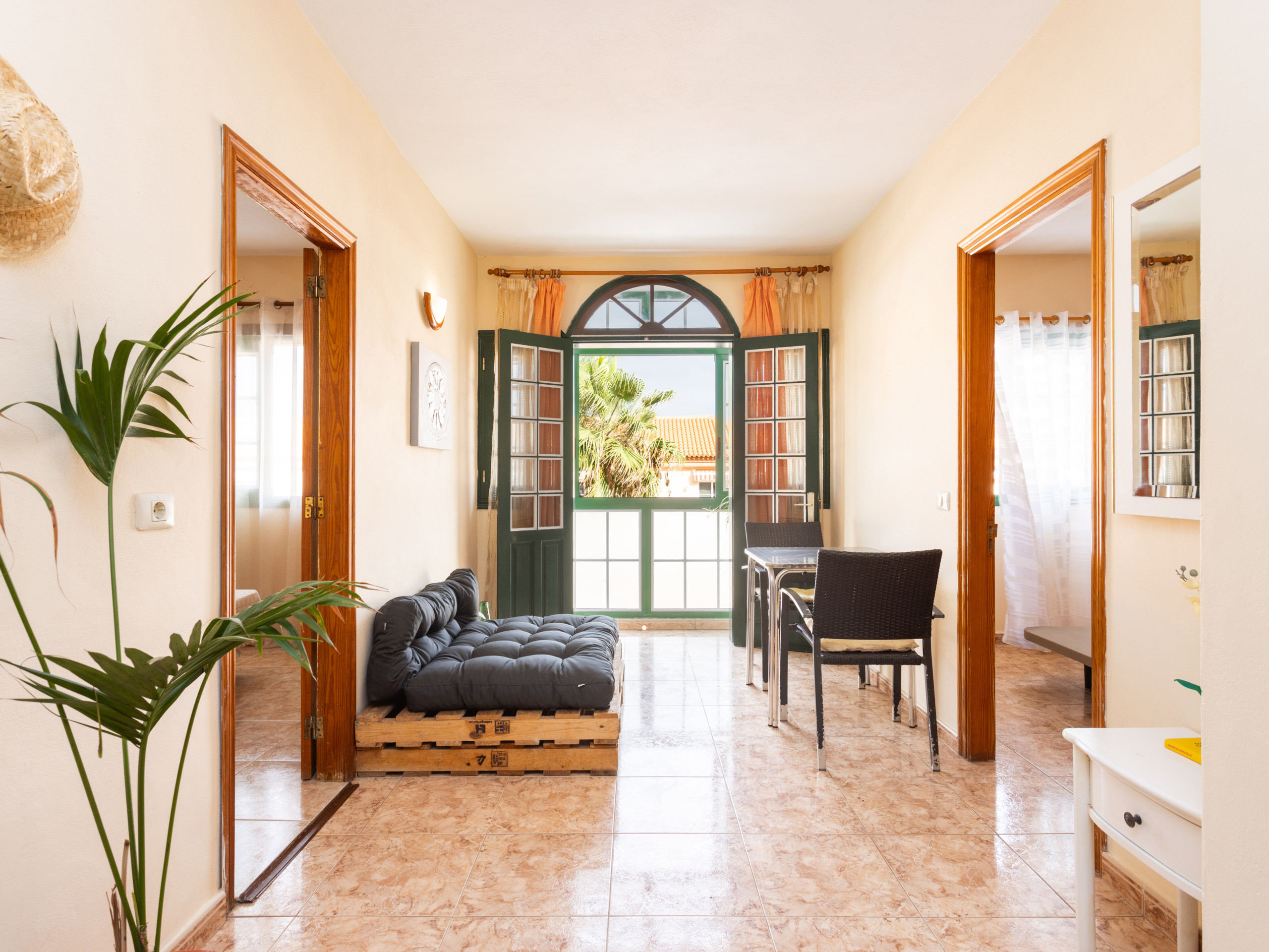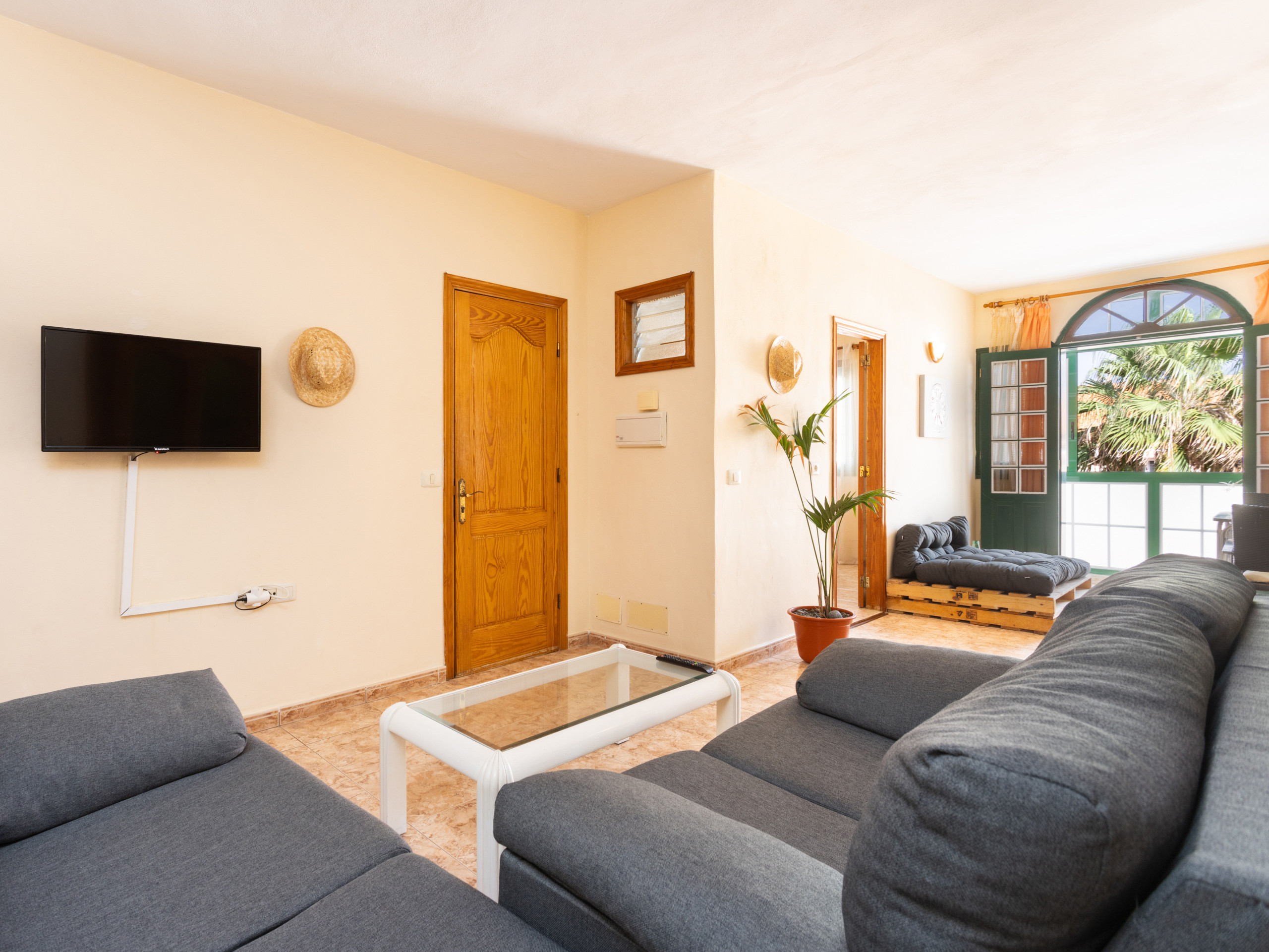 Encantador piso de 3 dormitorios,. ¡Ideal para 4 personas! Ubicado en el pintoresco Pueblo Casa Amarilla, en Caleta de Interian. El piso cuenta con tres cómodos dormitorios: uno principal equipado con una cama doble y un amplio armario, uno con una cómoda cama individual y otra con 2 camas individuales. Te proporcionamos ropa de cama, asegurando que tu estancia sea lo más cómoda posible. La sala de estar es un lugar acogedor, donde podrás relajarte en un suave sofá mientras disfrutas de la televisión. Para mantenerte conectado, ofrecemos Wi-Fi gratuito a lo largo del apartamento. La cocina está completamente equipada, con vajilla, mesa de comedor y un fogón. Además, el apartamento incluye una lavadora.