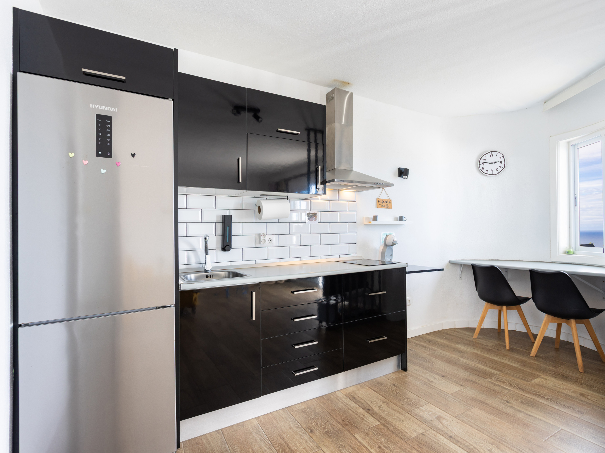 La cocina, está equipada con nevera y congelador.