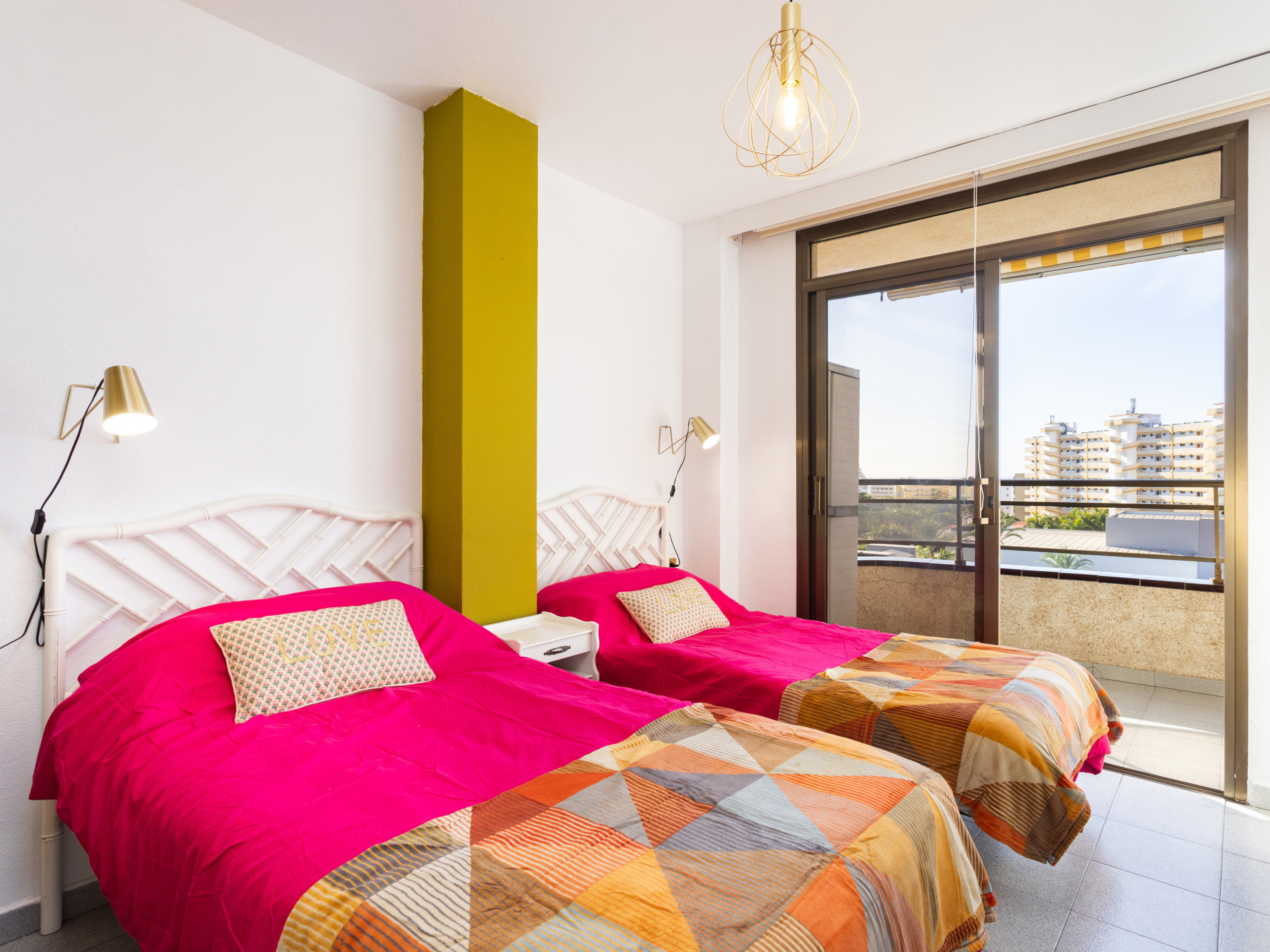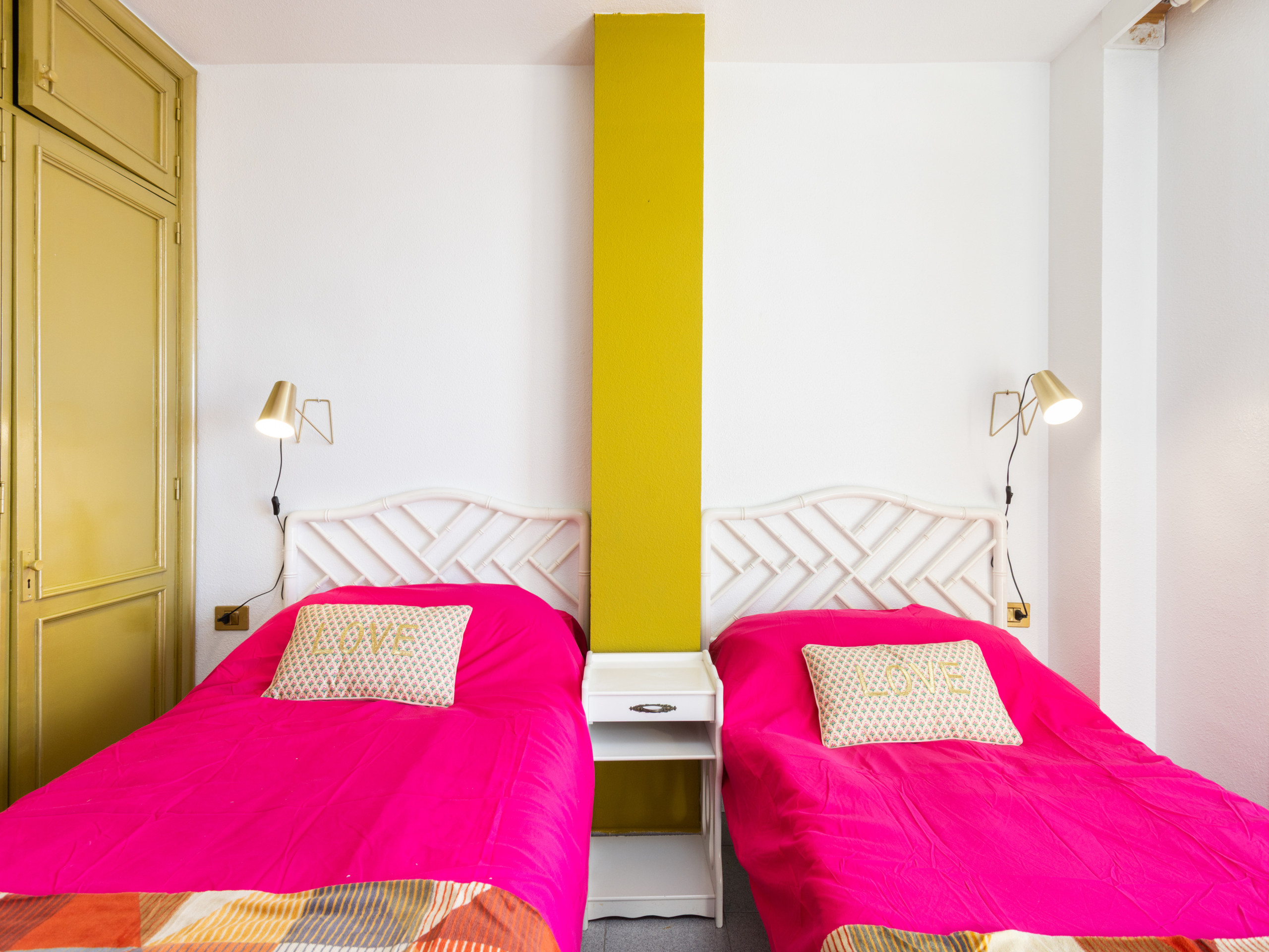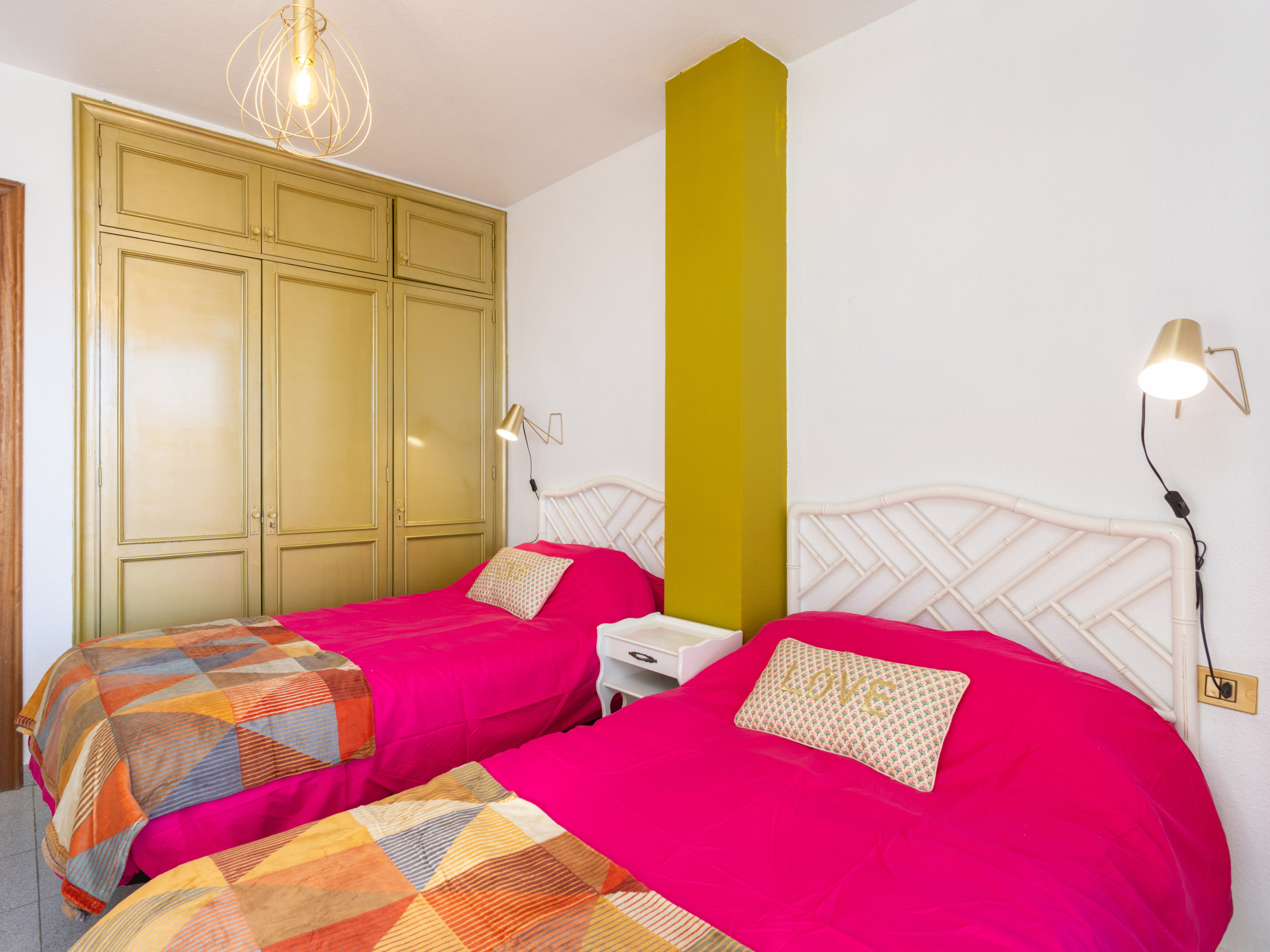 El apartamento cuenta con dos camas individuales, ideal para amigos o parejas que prefieren camas separadas. Disfruta de conexión WiFi gratuita y una cocina completamente equipada con electrodomésticos como nevera, lavadora, microondas, cafetera, tostadora y hervidor.