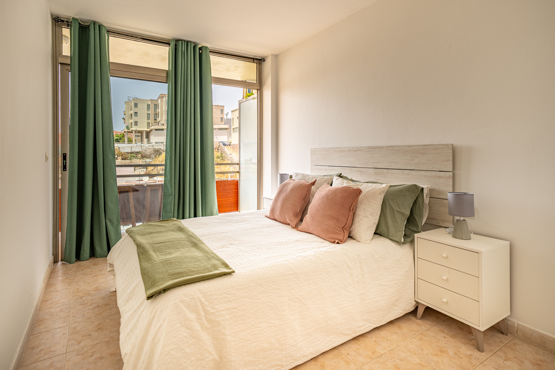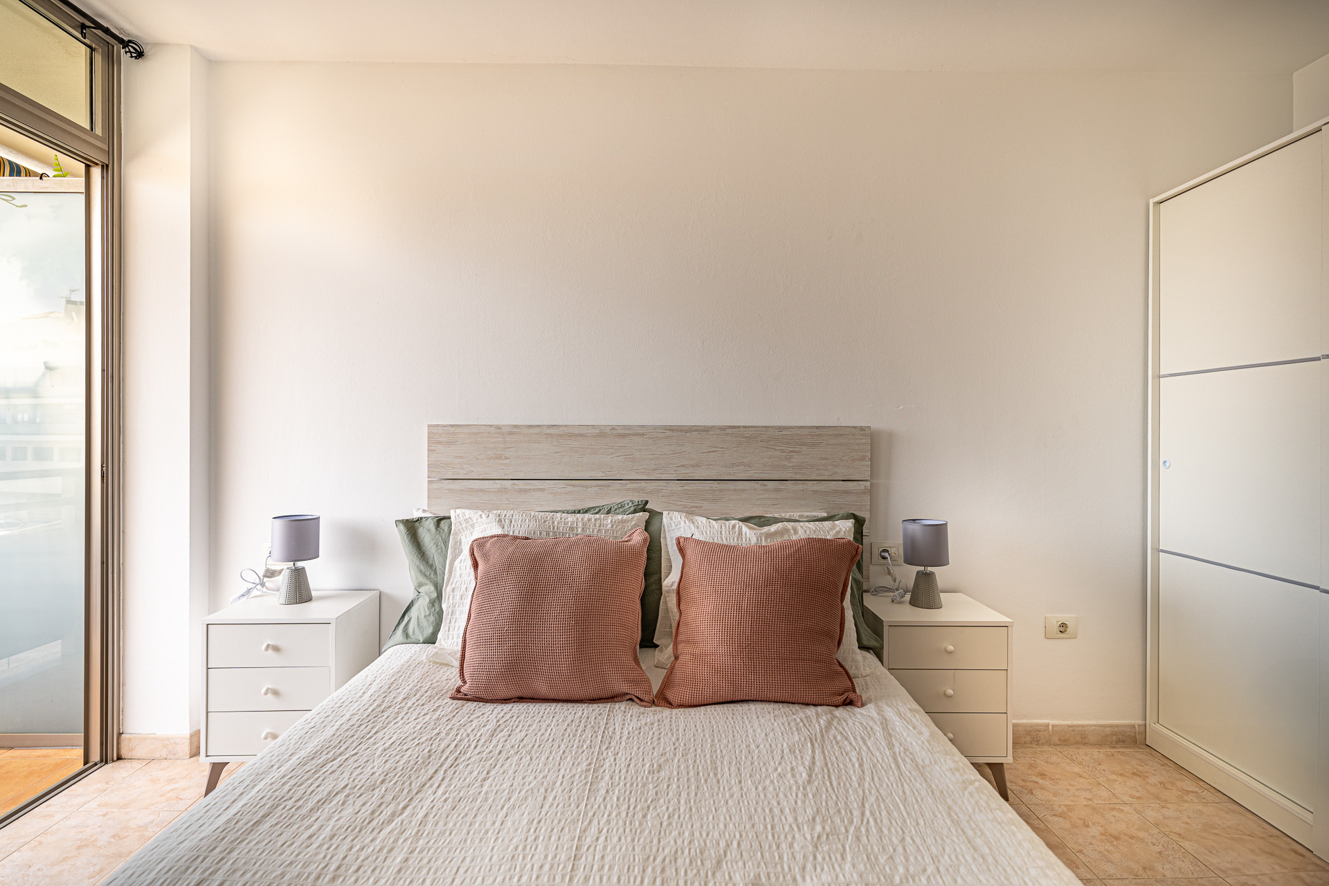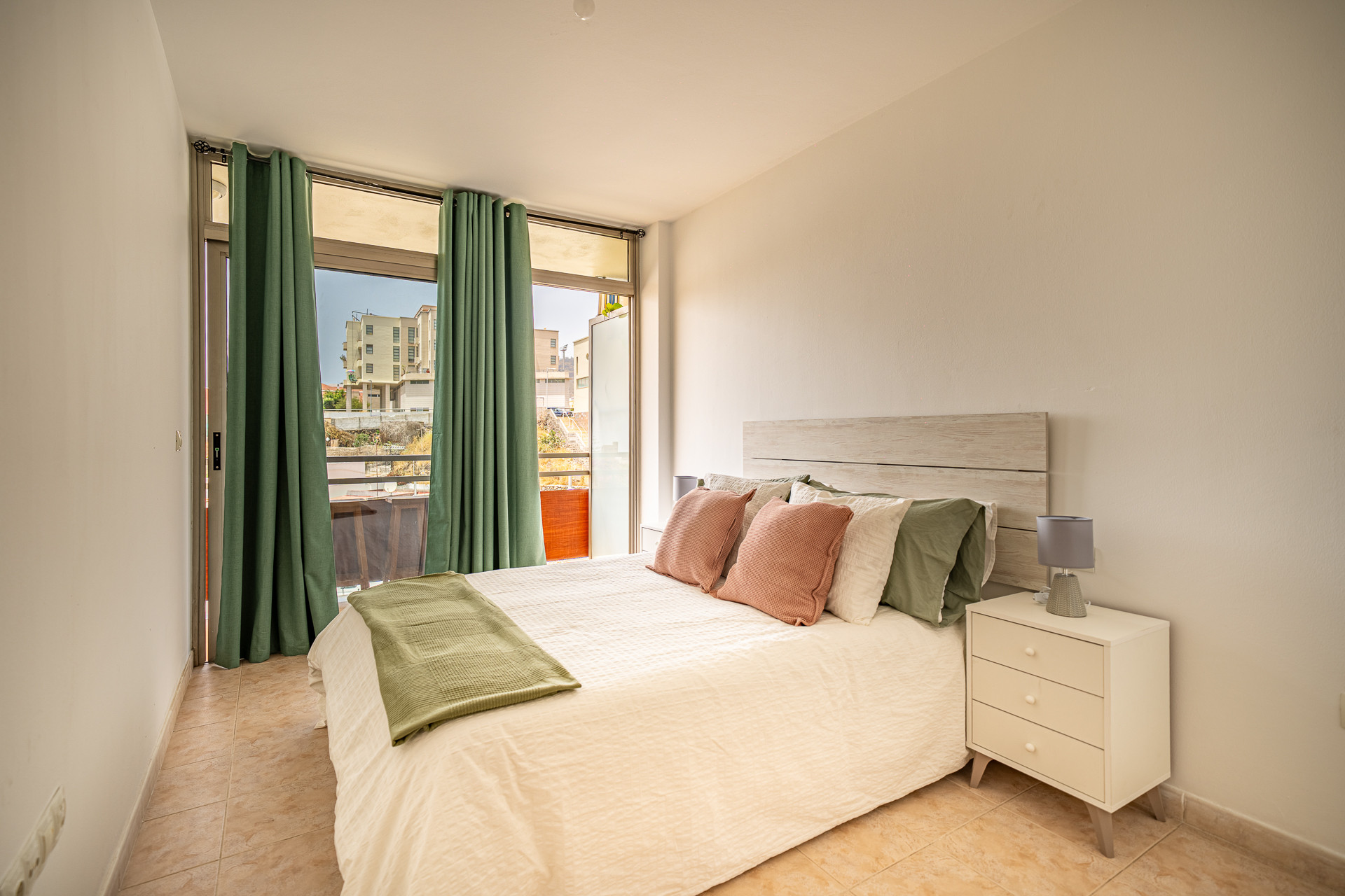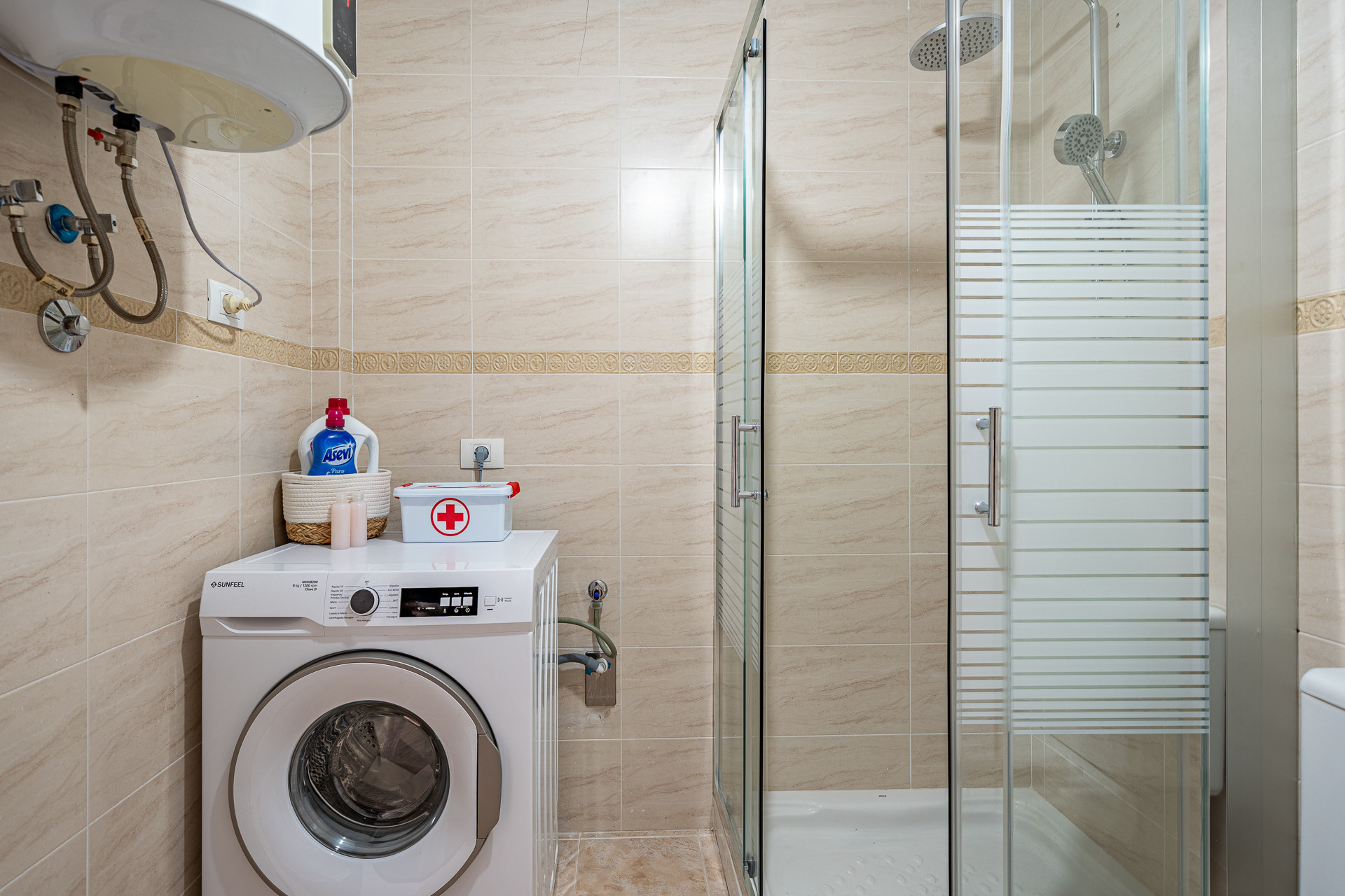 El apartamento cuenta con un dormitorio principal equipado con una cama doble, perfecto para parejas o viajeros solitarios. Dispone de un baño completo con ducha, ideal para relajarte después de un día de exploración. La cocina americana está totalmente equipada con electrodomésticos modernos como nevera, lavadora, horno, microondas, máquina de café y menaje completo, permitiéndote preparar deliciosas comidas durante tu estancia.