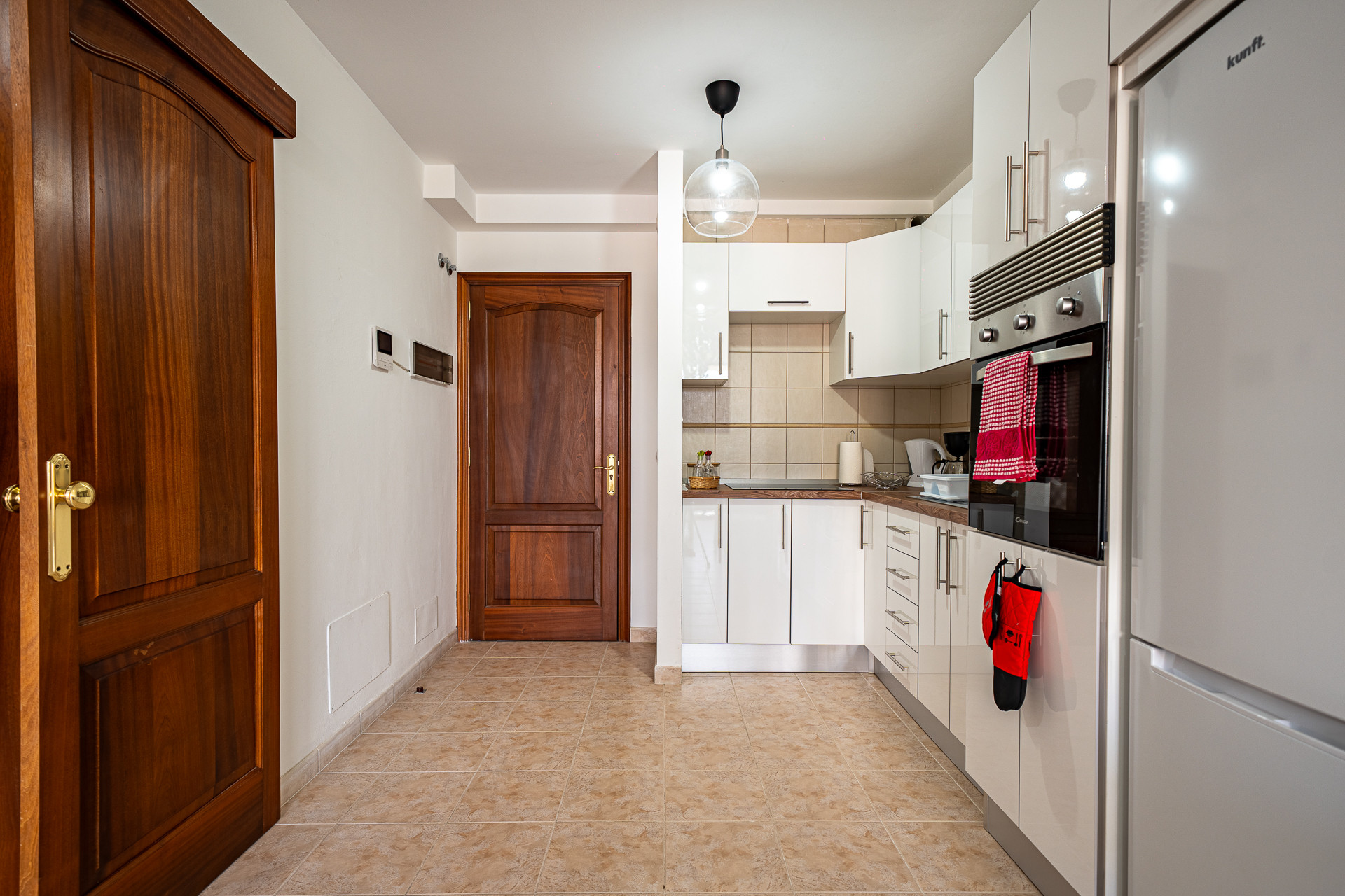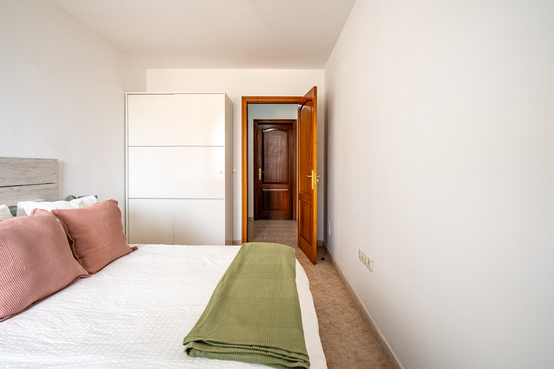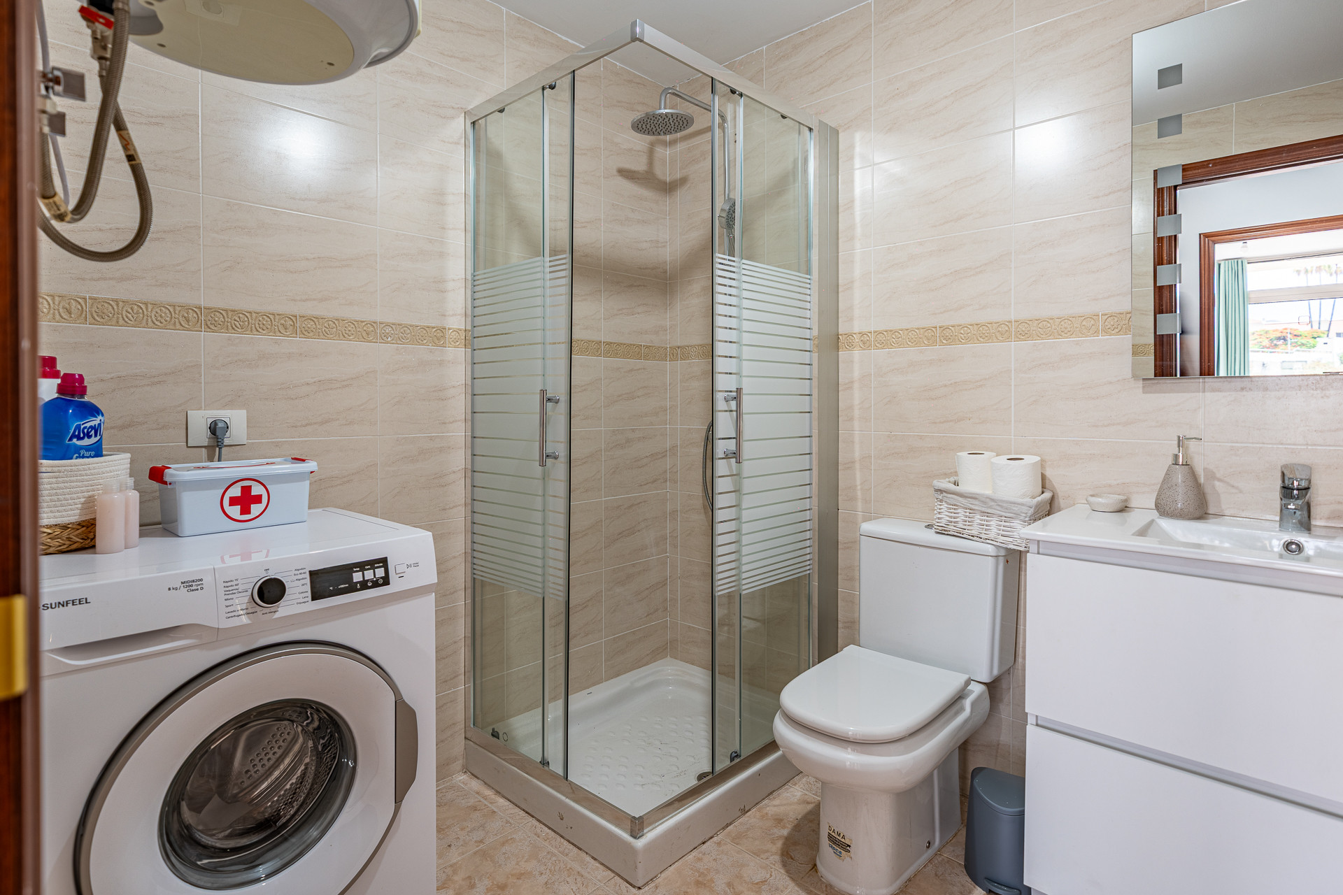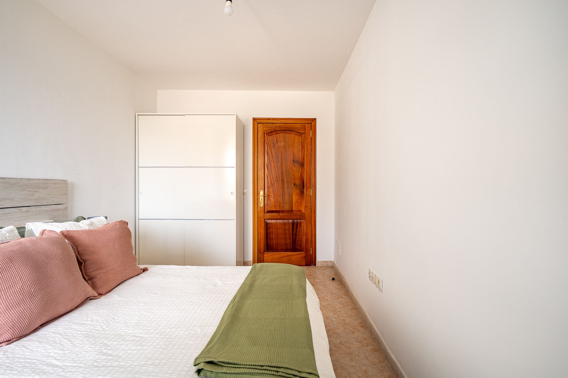 El apartamento cuenta con un dormitorio principal equipado con una cama doble, perfecto para parejas o viajeros solitarios. Dispone de un baño completo con ducha, ideal para relajarte después de un día de exploración. La cocina americana está totalmente equipada con electrodomésticos modernos como nevera, lavadora, horno, microondas, máquina de café y menaje completo, permitiéndote preparar deliciosas comidas durante tu estancia.