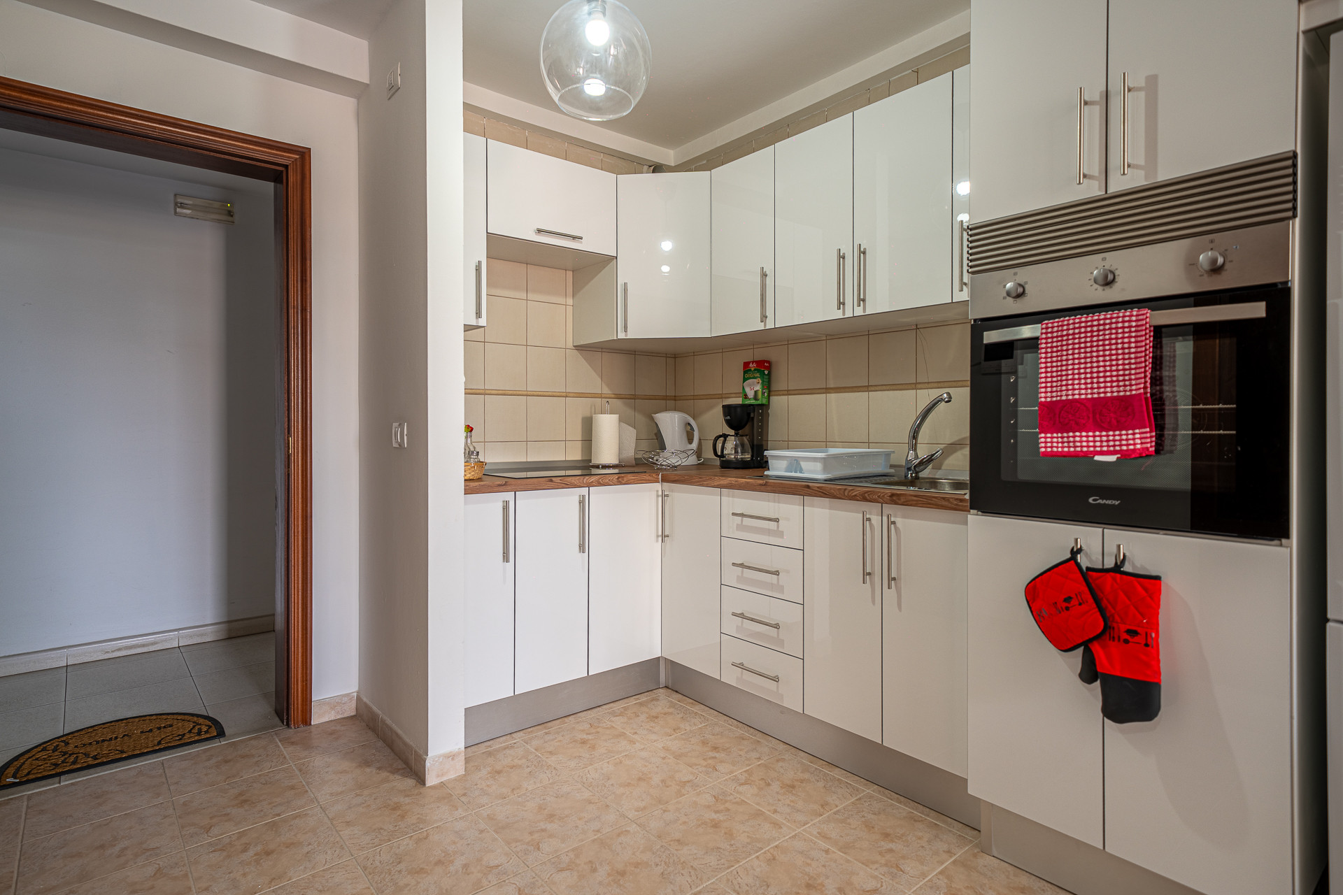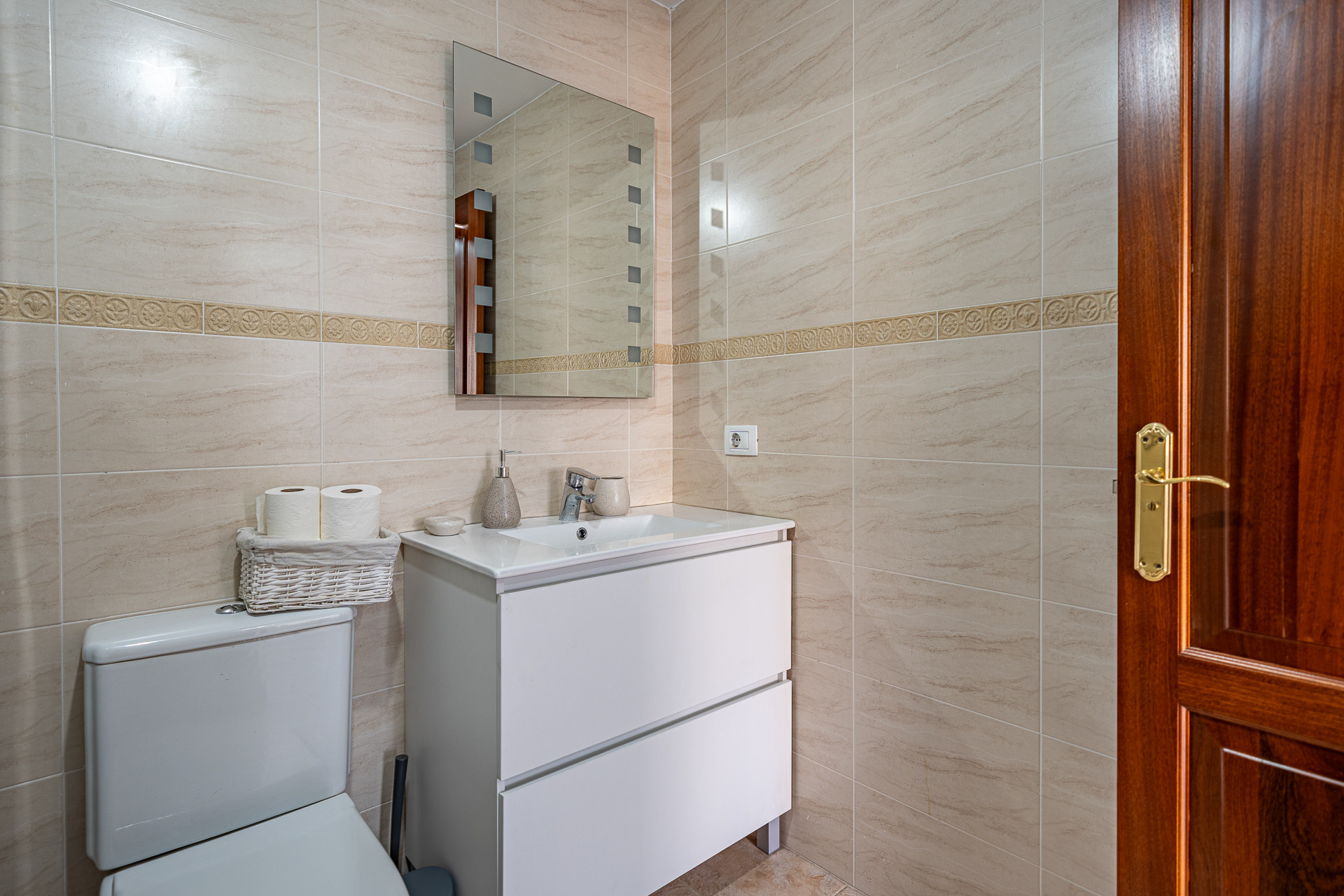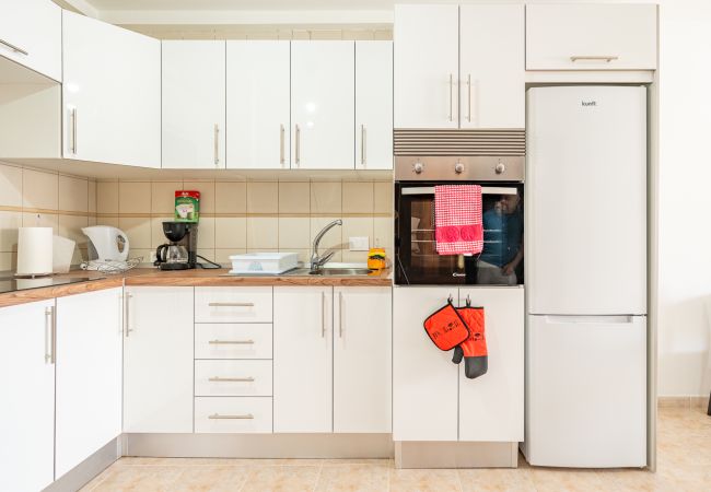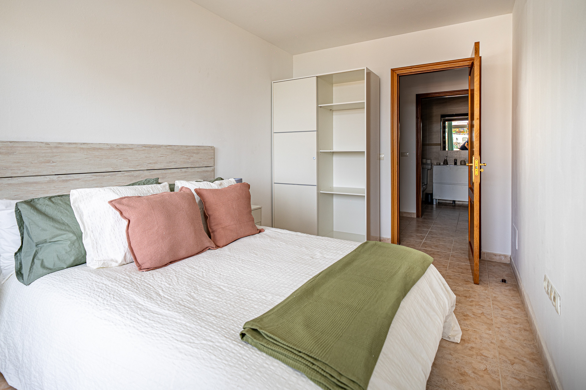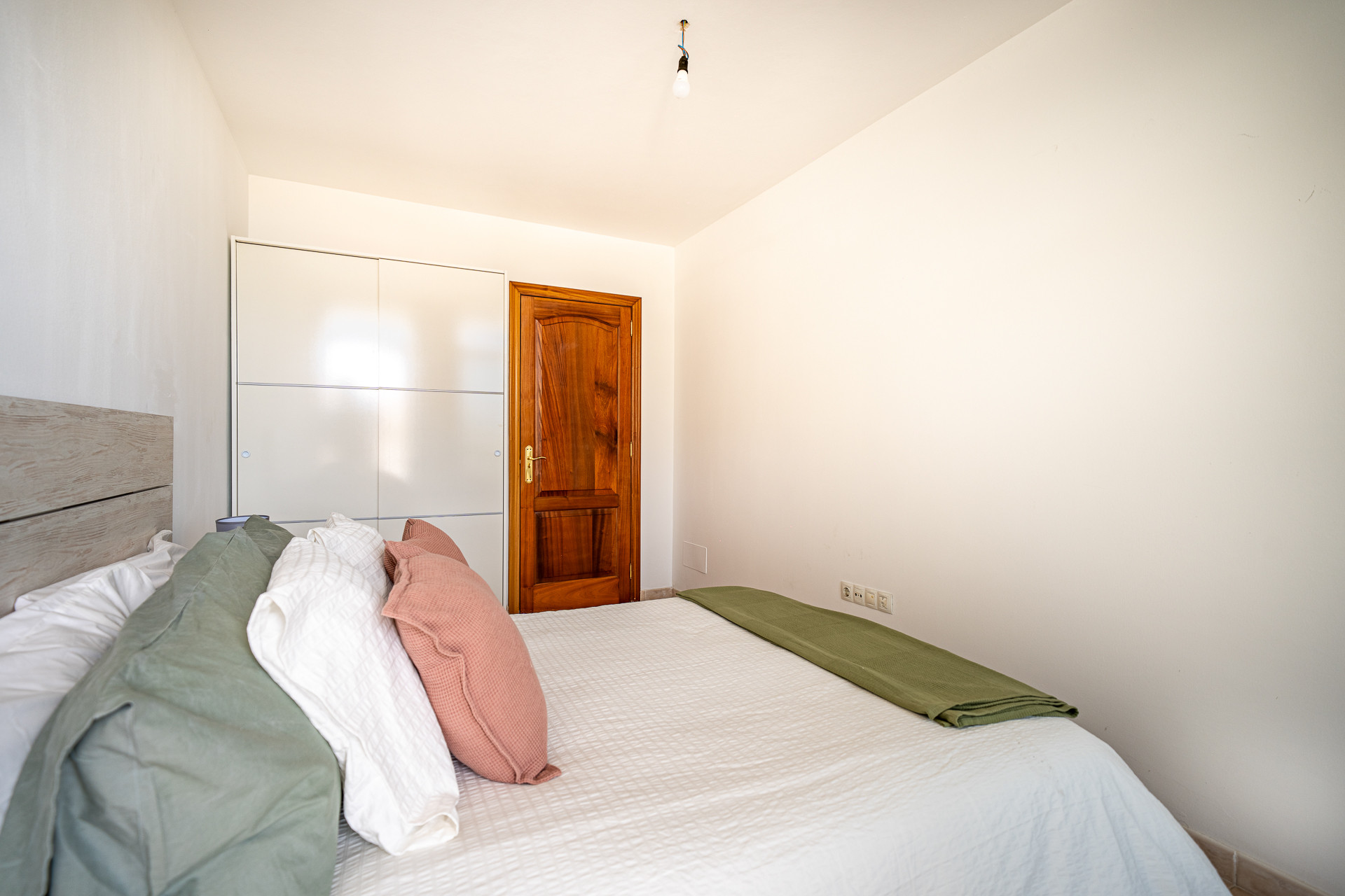 El apartamento cuenta con un dormitorio principal equipado con una cama doble, perfecto para parejas o viajeros solitarios. Dispone de un baño completo con ducha, ideal para relajarte después de un día de exploración. La cocina americana está totalmente equipada con electrodomésticos modernos como nevera, lavadora, horno, microondas, máquina de café y menaje completo, permitiéndote preparar deliciosas comidas durante tu estancia.