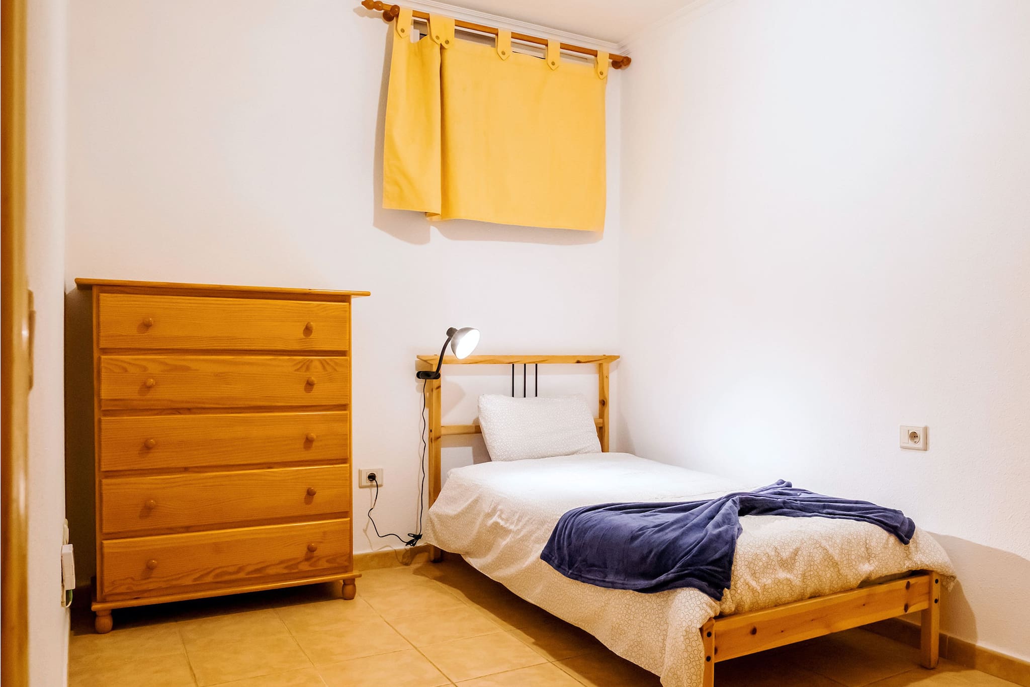Su ubicacion es maravillosa ya que se encuentra pequeño pueblo costero con multitud de terrazas, cafeterías, restaurantes y zonas de paseos, es ideal para familias y grupos de amigos de hasta 5 personas, ya que dispone de 1 dormitorio con cama matrimonial, un luminoso salón con sofa cama y en la parte de arriba una cama individual y una gran terraza con mesas y sillas para relajarse o comer al aire libre ; también puedes disfrutar de una piscina comunitaria y la playa está a menos de 2 minutos andando.