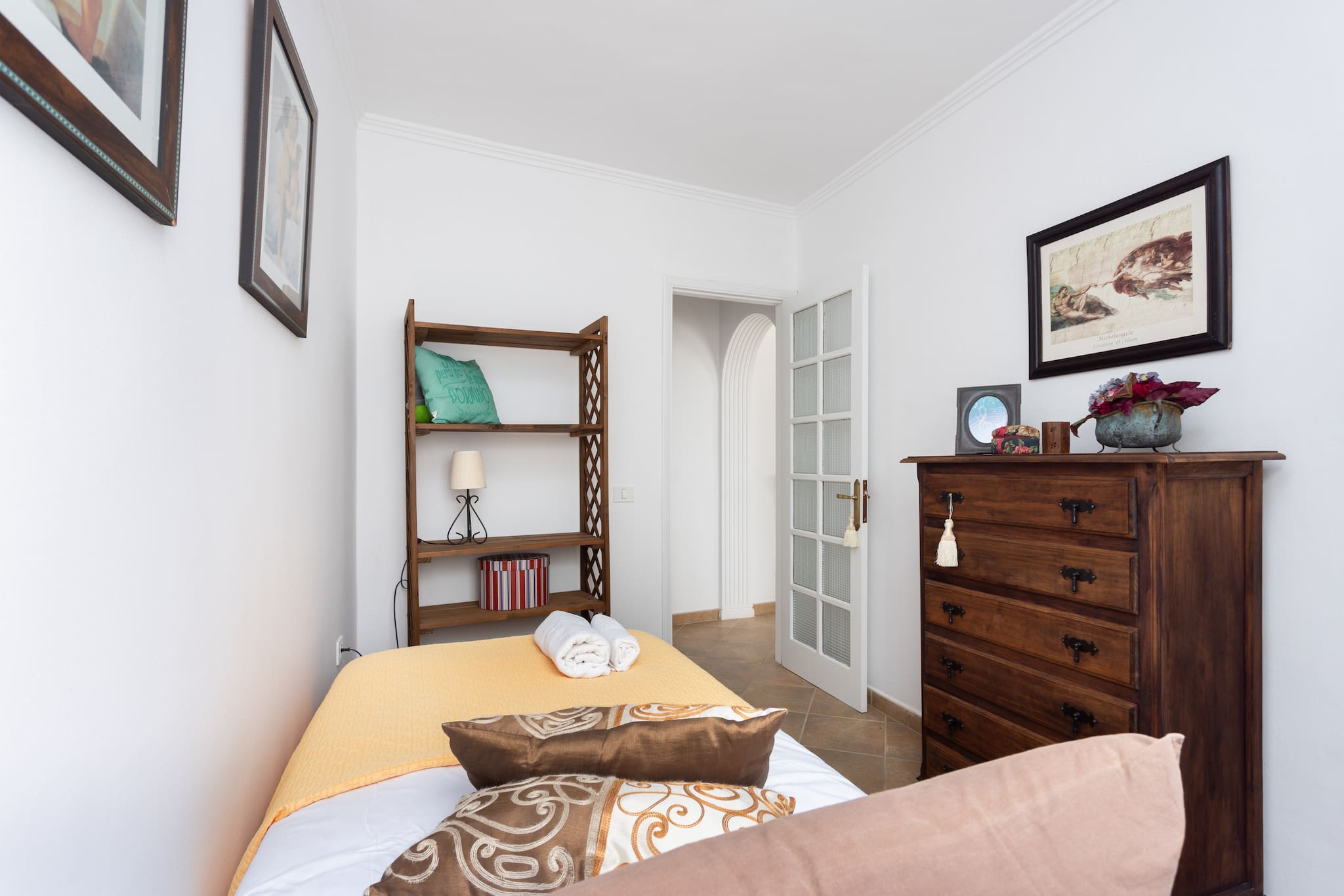 El apartamento cuenta con un encantador dormitorio principal equipado con una cama doble. Además, hay un segundo dormitorio con dos camas individuales, que ofrece un espacio adicional para familias o amigos. Ambos dormitorios están provistos de ropa de cama de calidad, garantizando un sueño reparador.
