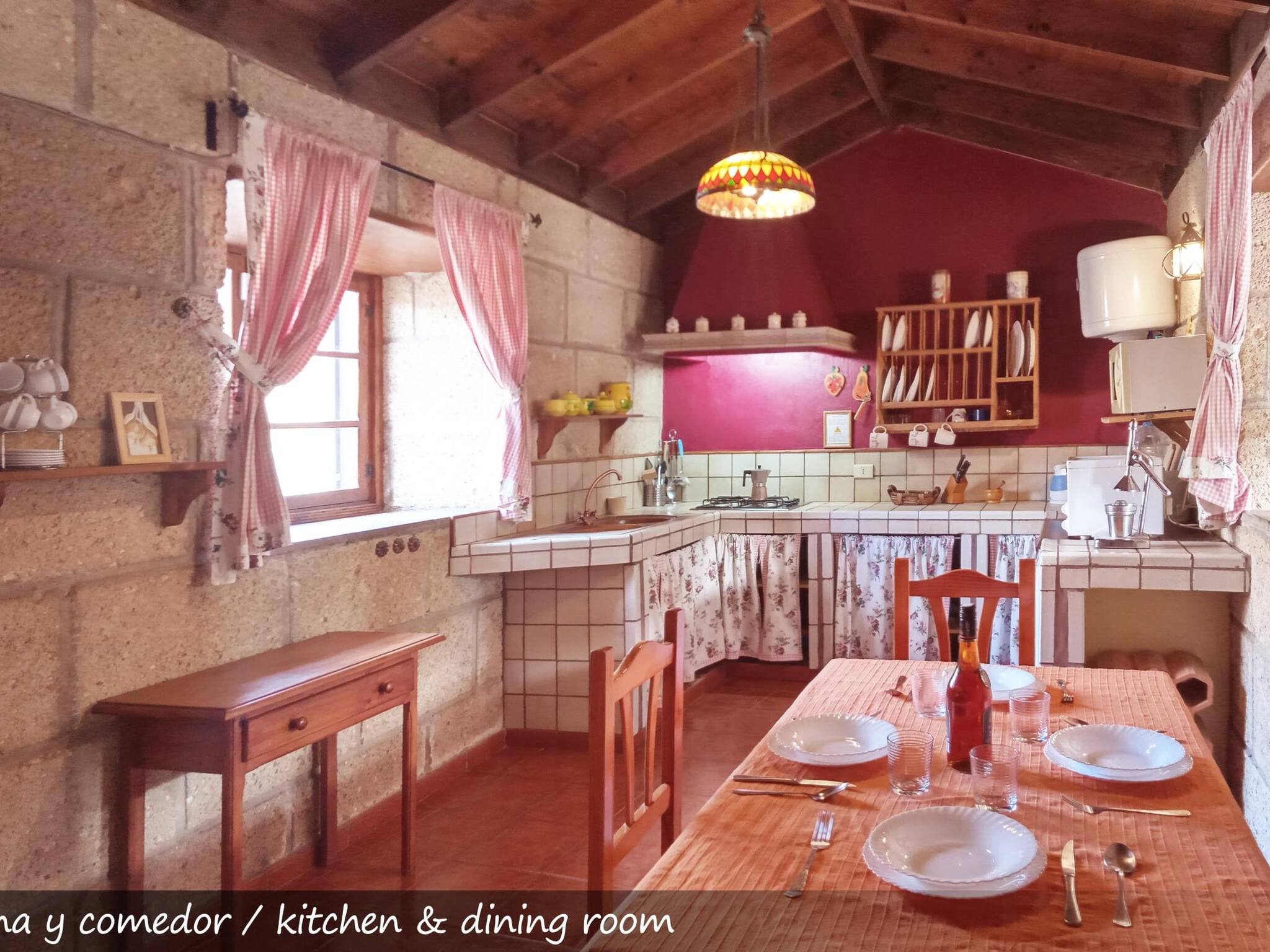 La casa cuenta con Internet (WIFI en el Salón, debido a el área geográfica de la casa Rural la vivienda cuenta con WIFI para lo mas necesario), cocina completamente equipada, neveras, secador de pelo, sábanas y toallas de ducha, un precioso patio, plaza de garaje, y piscina.