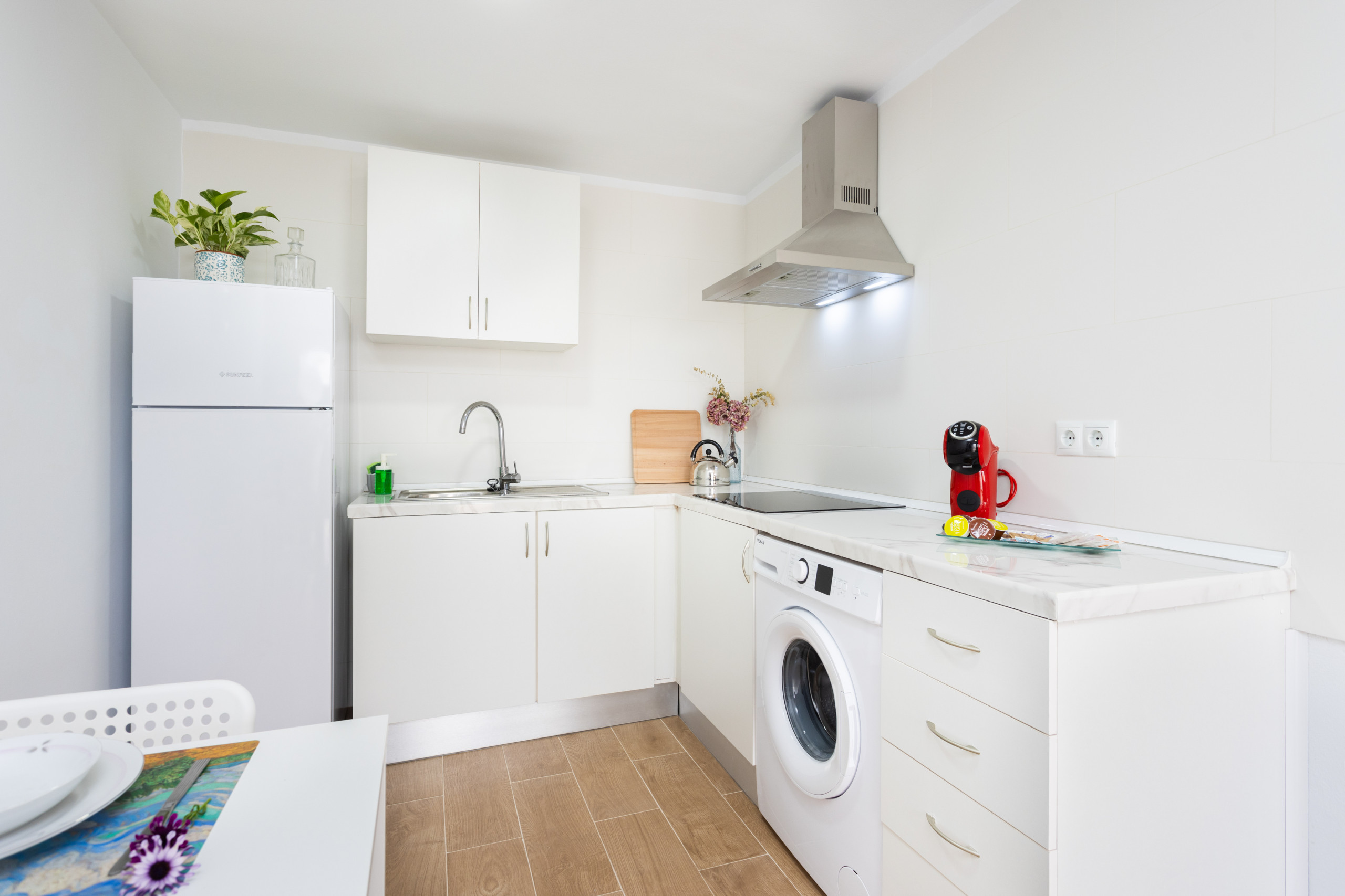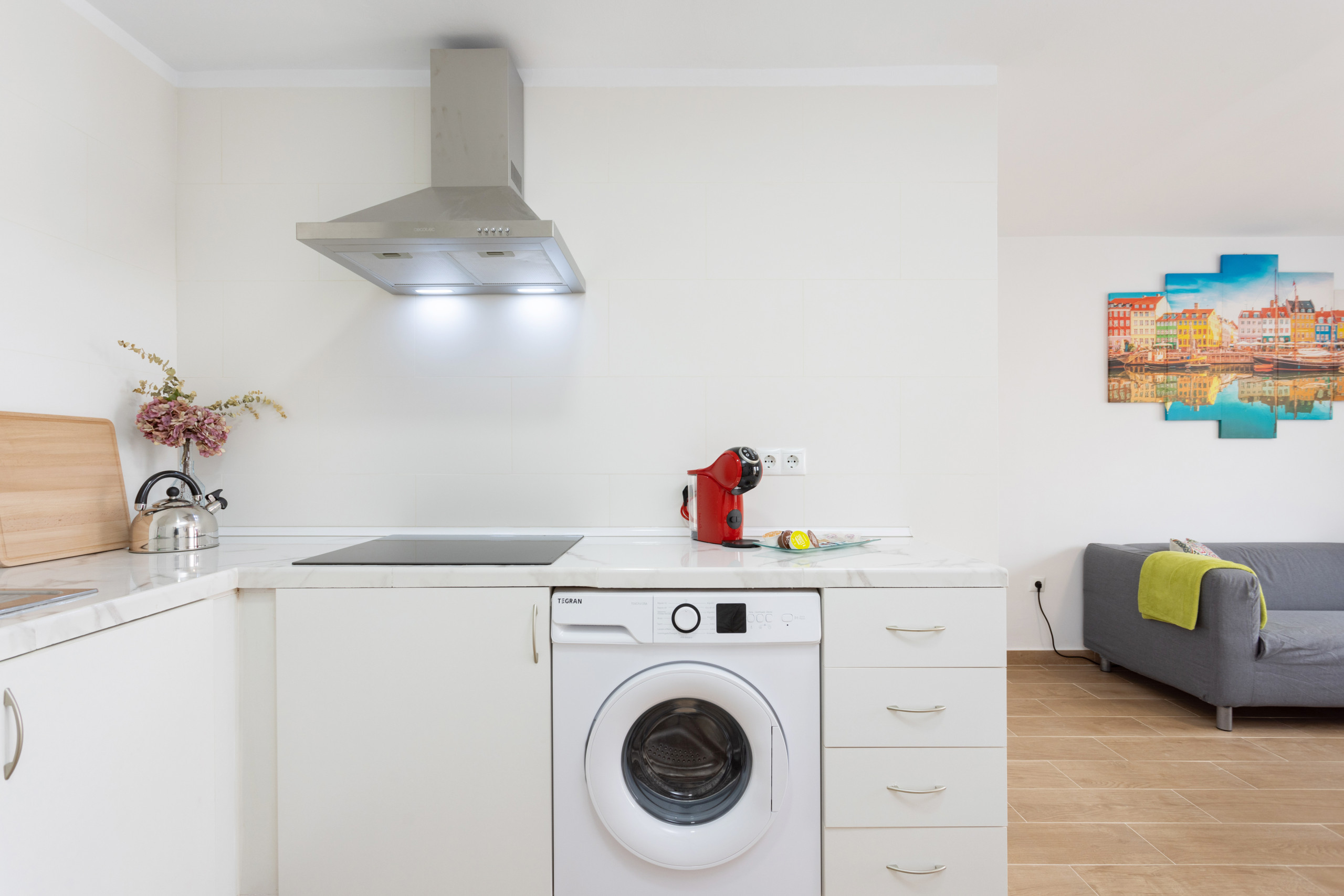La cocina, de vitrocerámica, está equipada con nevera, congelador, vajilla/cubertería, utensilios/cocina, cafetera y hervidor de agua.