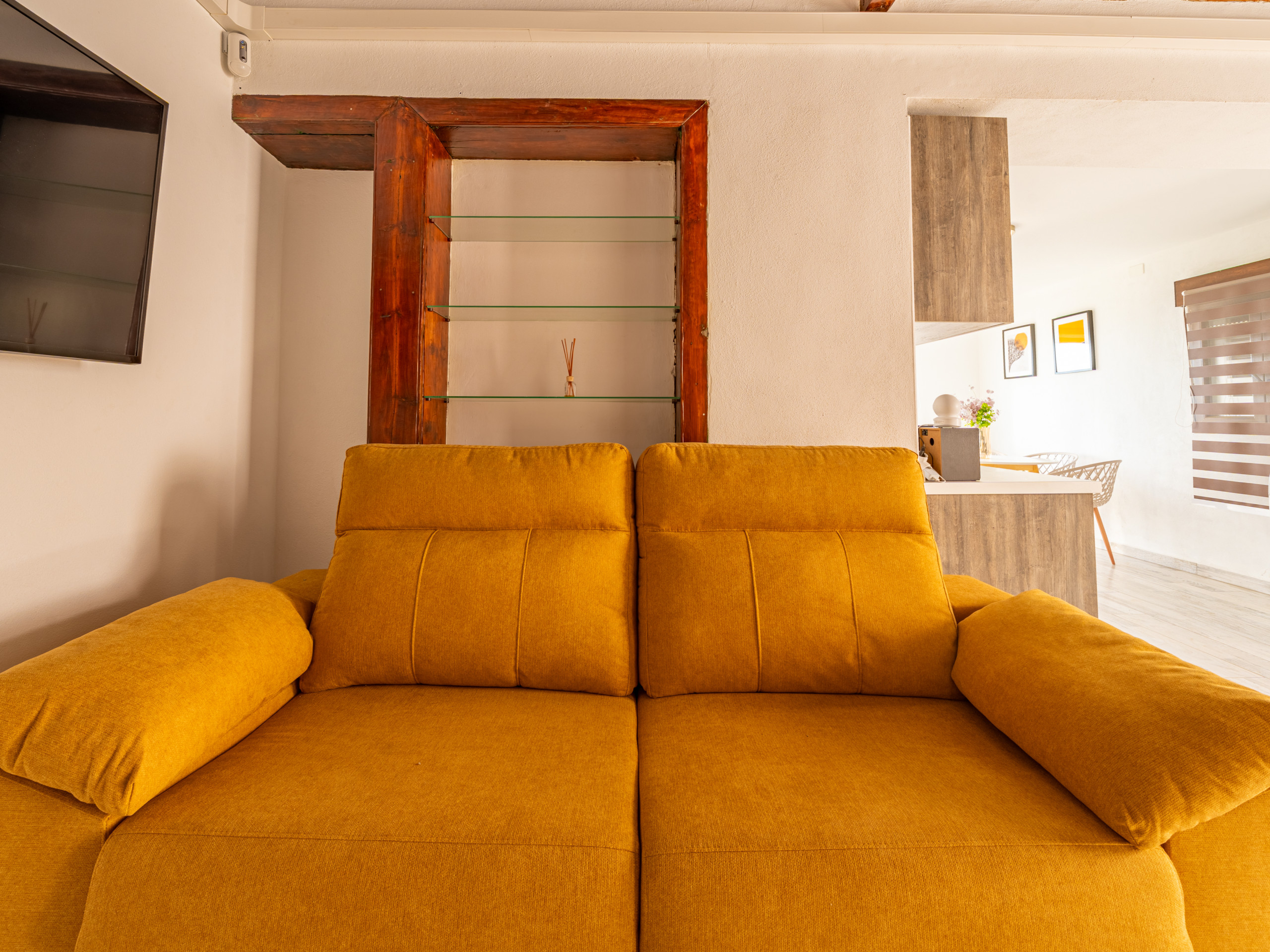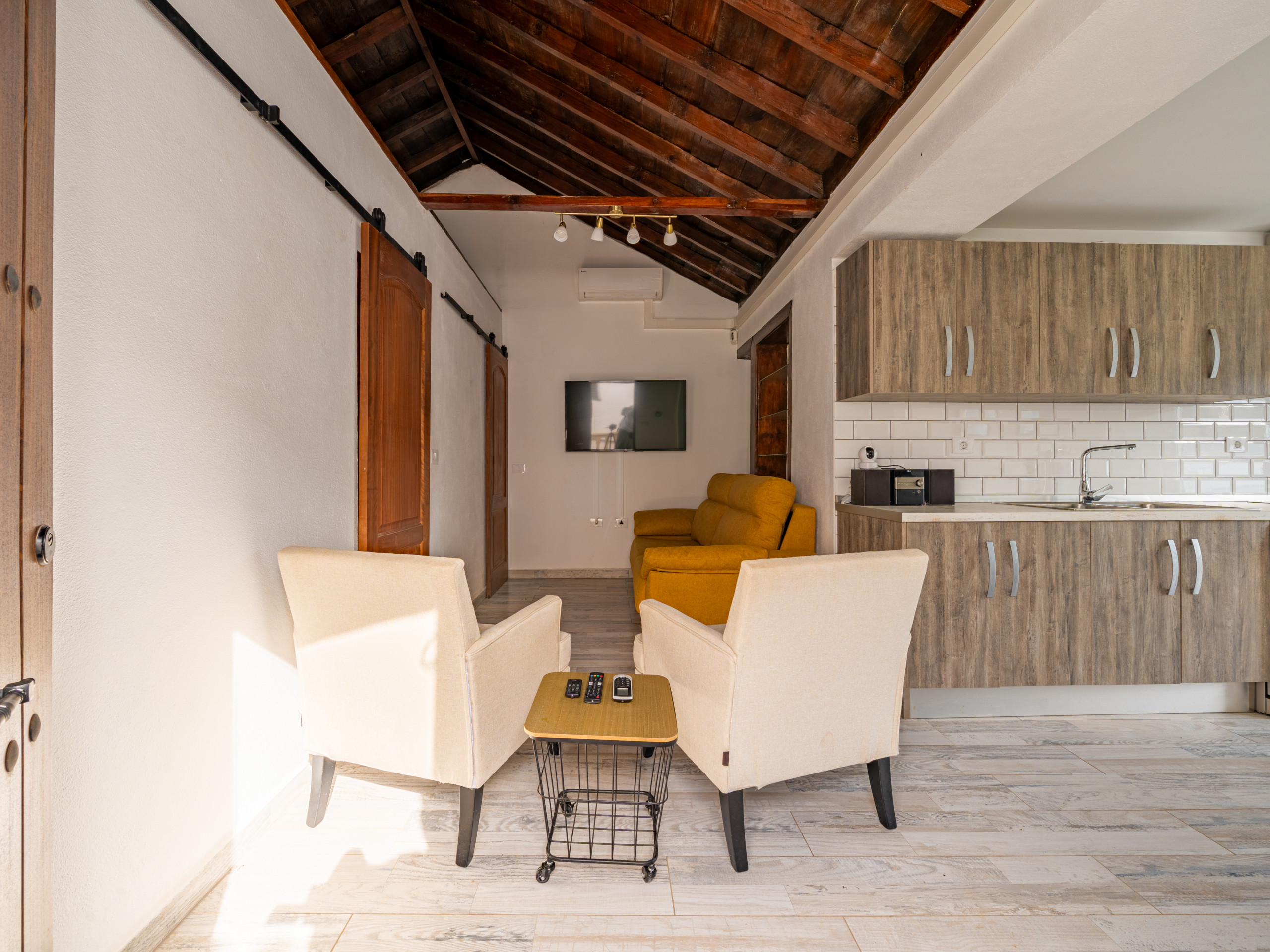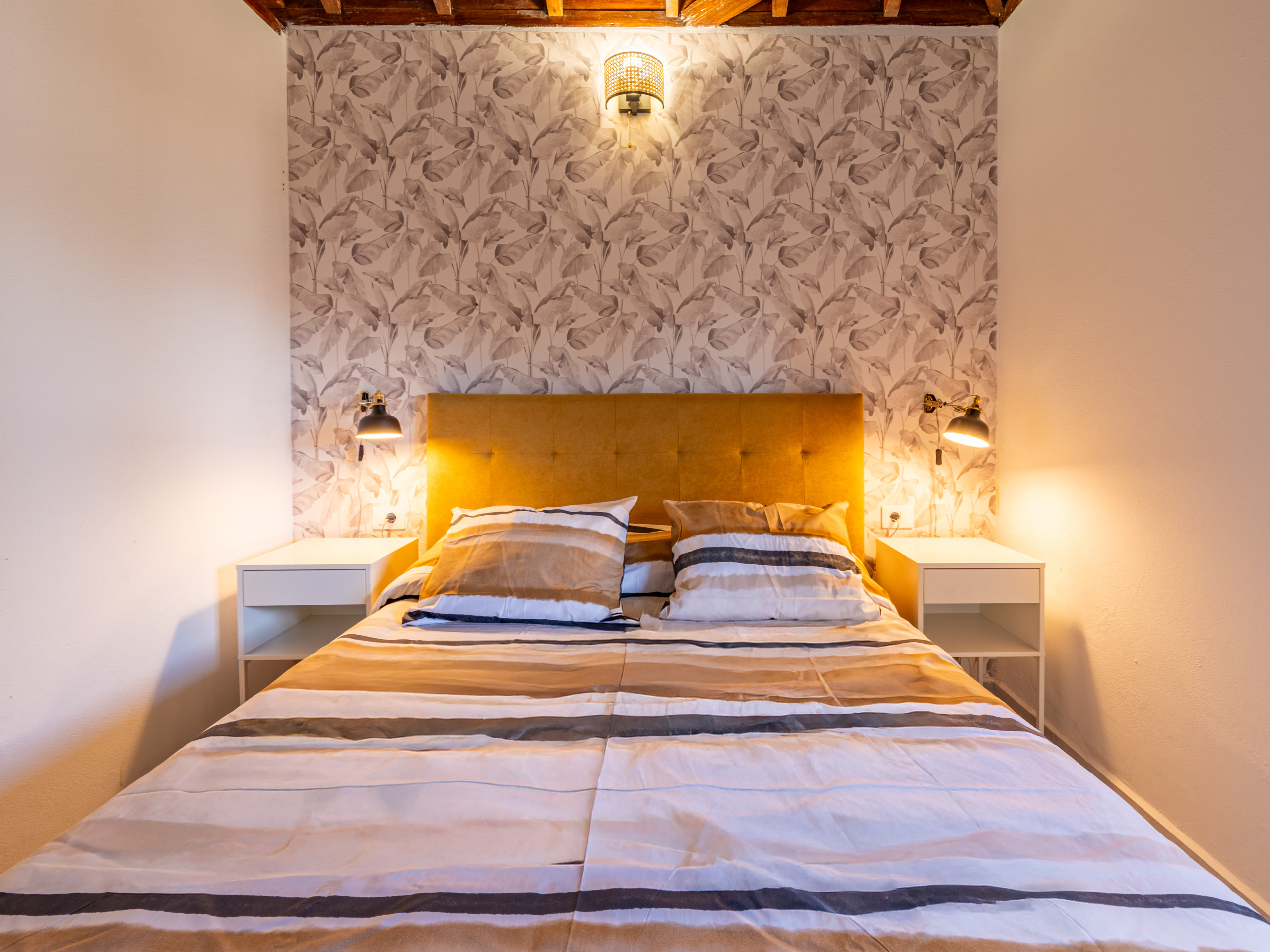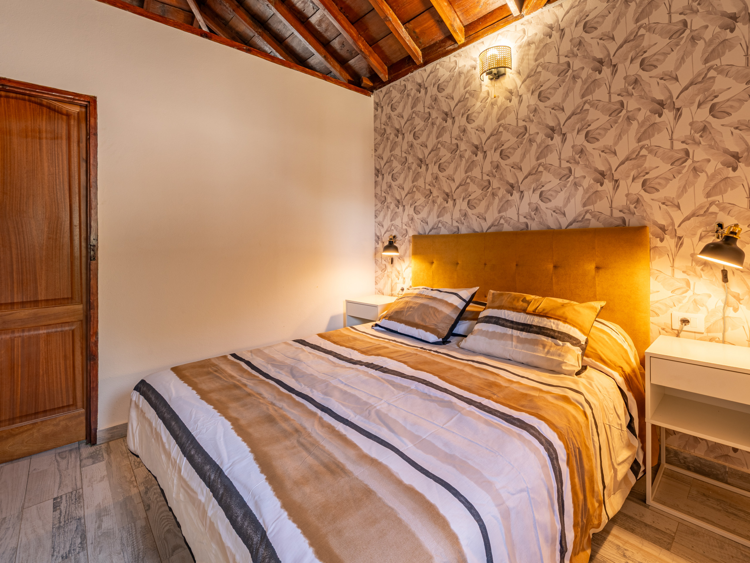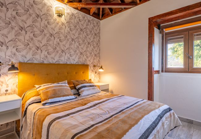 El alojamiento cuenta con un dormitorio con dos camas (una cama doble y un sofá-cama ), ideal para acomodar hasta 3 personas cómodamente. Disfruta de un ambiente luminoso y relajante con impresionantes vistas a la montaña que te transportarán a la naturaleza canaria.